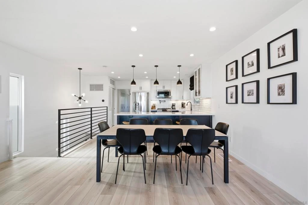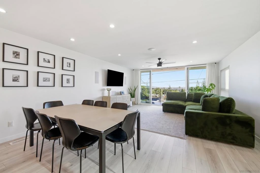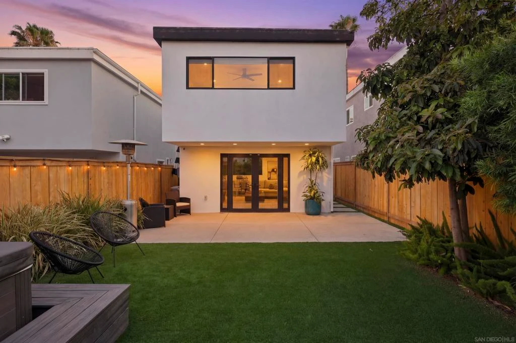 Elevated high above the Pacific Beach flats, Bay View Modern is a rare find that perfectly balances privacy, high-tech luxury, and breathtaking southern views of Mission Bay. Situated at the end of a quiet cul-de-sac with no through traffic, this home is nestled in a friendly community that’s just minutes from local shopping and top-tier schools. The residence underwent a full interior remodel in 2019 followed by an exterior stucco and paint refresh in 2020, resulting in a turnkey sanctuary equipped with house-wide voice-activated lighting, updated windows with custom treatments, and an in-wall surround sound system. The versatile floor plan features two bedrooms and a bathroom on the lower level, while the upper level serves as the heart of the home with a third bedroom, bathroom, and an open-concept kitchen and living area designed to take full advantage of the glistening water views. The chef-inspired kitchen offers modern conveniences like a pot filler and integrated lazy Susans. From the front balcony, you are treated to a front-row seat for vibrant San Diego sunsets and the magic of July 4th fireworks glistening over the bay. Outdoor living is redefined in the 2023 remodeled backyard, which features a large patio and deck, a seven-seater jacuzzi with built-in Bluetooth audio, and a mature avocado tree producing impressive fruit. This smart-home retreat offers ultimate peace of mind with fully paid solar, a new water heater installed in March 2026, a smart doorbell system, and a My Q smart garage door opener. By combining a "top-of-the-world" feel with effortless access to the best of San Diego, Bay View Modern represents the pinnacle of sophisticated coastal living.