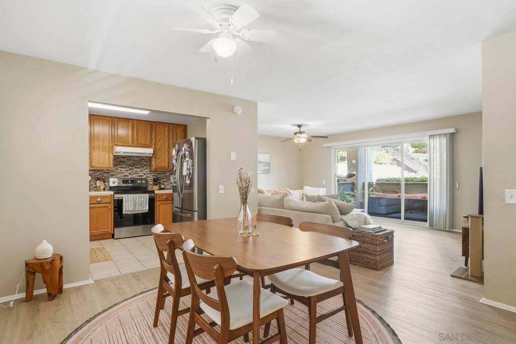 Ideal Home or Investment Opportunity, just minutes from Mission Bay, this desirable 2-bedroom, 2-bath single-level condo offers the perfect blend of comfort and convenience. Enjoy peaceful views of the pool area from your spacious private balcony in this end-unit home with no neighbors on either side. Inside, you’ll find upgraded appliances, new luxury vinyl flooring, window treatments, newer oversized sliding glass doors for natural light, and neutral tones throughout the open-concept living and dining areas—ready for your personal coastal touch. The modern kitchen comes fully equipped with newer appliances including an electric range, refrigerator, and dishwasher, perfect for everyday cooking or entertaining. The primary suite features a remodeled walk-in shower and an expansive walk-in closet, while the rare in-unit laundry room adds extra convenience and storage. Located in a highly sought-after gated community, residents enjoy two sparkling pools, relaxing spas and elevator access. The unit also includes two side-by-side covered parking spaces with storage. With easy freeway access, you’re just minutes from Mission Bay, local beaches, dining, and shopping. The nearby Clairemont Blvd Blue Line Trolley offers quick connections to UCSD, UTC, Downtown, and beyond.