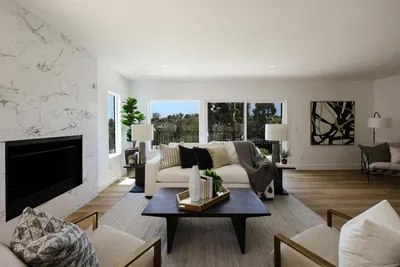 2861 Brant in Mission Hills is a stunning 3-bedroom, 3-bathroom residence spanning 2,940 square feet, boasting of canyon/harbor views. Nestled in the prestigious Mission Hills enclave of North Arroyo Canyon neighborhood, this property combines modern luxury and unparalleled living experience. Open-concept design maximizes space and natural light, creating a bright and airy ambiance. Home flows seamlessly from the gourmet kitchen to the expansive living and dining areas, perfect for entertaining or spacious family living. The fully renovated kitchen is a chef’s dream, featuring high-end stainless steel appliances, custom cabinetry, quartz countertops, a large center island, and designer fixtures, all tailored for both functionality and style. Home has been completely transformed with top-tier upgrades, including luxury vinyl flooring, recessed lighting and aesthetic appeal and modern convenience. Three generously sized bedrooms provide ample comfort. The primary suite is a serene retreat with harbor view, a walk-in closet, and a spa-inspired en-suite bathroom featuring dual vanities, a soaking tub, and a walk-in show. All three bathrooms have been meticulously updated with premium materials, including sleek tiles, contemporary vanities, and high-end fixtures, offering a touch of sophistication. Expansive windows and thoughtfully designed wrap-around curated decking showcase the views of the western harbor, Point Loma, creating a picturesque backdrop for daily living and sunset gatherings. Situated in Mission Hills, the home offers proximity to San Diego’s