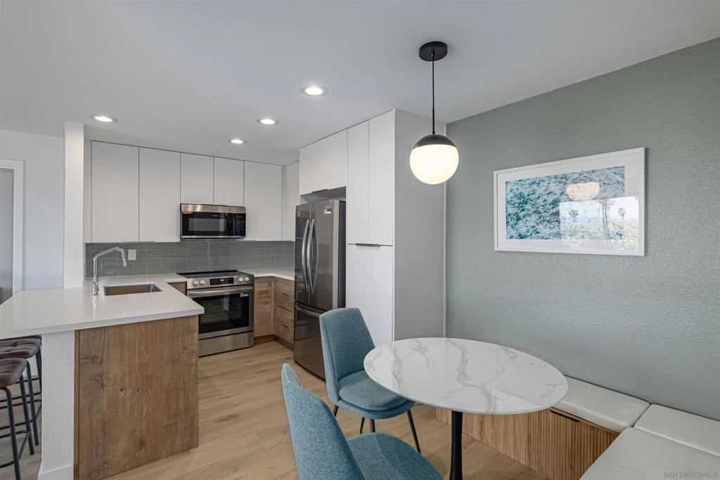 Model Home – Residence 208 at The Heights at Bay Park. Arguably one of the most coveted locations in the entire community, this beautifully appointed two-bedroom, two-bath model residence showcases sweeping views extending all the way to the ocean. Positioned to capture coastal breezes and sunset skies, this light-filled home offers an exceptional combination of location, outlook, and thoughtful design. The open-concept living area flows seamlessly to a private balcony, creating an ideal setting for indoor-outdoor living. The kitchen opens to the dining and living spaces, making everyday living and entertaining effortless. Professionally designed as the community’s featured model, this residence includes upgraded finishes, contemporary styling, and carefully curated details throughout. The spacious primary suite offers an en-suite bath and generous closet space, while the secondary bedroom and full bath provide flexibility for guests, home office, or additional living needs. Every space has been thoughtfully arranged to maximize comfort, functionality, and natural light. Located within close proximity to beaches, Mission Bay, coastal bike paths, dining, shopping, and major freeways, The Heights at Bay Park offers convenience and lifestyle in one of San Diego’s most desirable coastal-close neighborhoods. As the showcased model home, Residence 208 represents a rare opportunity to own one of the best-positioned homes in the community, combining ocean views, designer upgrades, and a highly sought-after location.