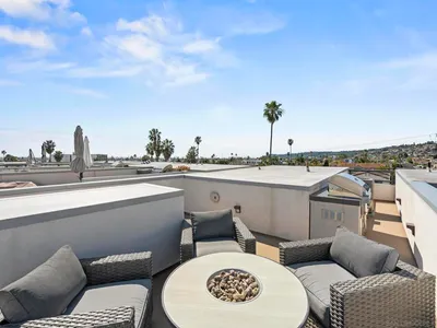 Experience modern coastal elegance in the heart of Point Loma with this exceptional 3-bedroom, 3.5-bath townhome. This property perfectly combines style, functionality, and a prime location. Designed for comfort, the home features a gourmet kitchen on the main level equipped with Jenn-Air appliances, quartz countertops, and an open-concept layout filled with natural light and soaring ceilings. Enjoy seamless indoor-outdoor living with a spacious private patio ideal for entertaining, plus a rooftop deck offering panoramic views of the bay, city, and hills. The luxurious primary suite boasts a walk-in closet, a private balcony, and a spa-inspired bathroom. Additional highlights include two secure garage parking spaces, EV-ready parking spaces, and gated storage in a charming 15-unit boutique community. Conveniently situated near Shelter Island, Liberty Station, beaches, dining, shopping, and the airport, this home truly embodies the best of coastal San Diego living.