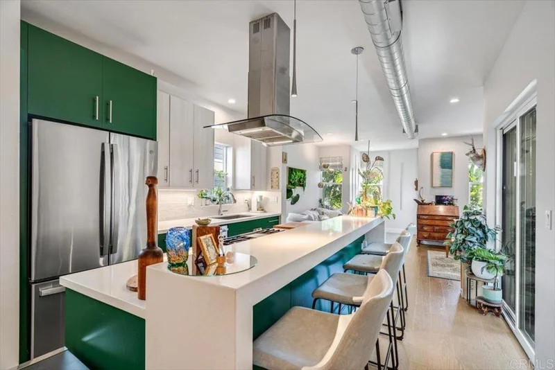 This sophisticated contemporary detached view condo offers the rare advantage of no HOA along with two dedicated parking spaces—a private garage and an additional tandem space, a valuable feature in this vibrant urban setting. The home features 2 bedrooms, 2.5 baths, and 1,438 sq ft of thoughtfully designed living space, where clean architectural lines, expansive windows, and curated modern finishes create a bright, refined interior. The open-concept main level seamlessly connects the living, dining, and kitchen areas, ideal for both everyday living and stylish entertaining. The chef-inspired kitchen showcases sleek cabinetry, quality countertops, and a generous island that anchors the space. Both bedrooms function as private en-suite retreats, while a well-appointed powder room on the main level adds convenience for guests. Additional highlights include in-unit laundry, a private patio for indoor-outdoor living, and the convenience of a detached one-car garage with an extra tandem parking space. The home is crowned by a rooftop deck with sweeping downtown skyline and water views, offering the perfect setting for sunset gatherings, al fresco dining, or relaxing above the city lights. Ideally located with easy access to Downtown San Diego, acclaimed dining, shopping, and major freeways, this residence delivers modern luxury, valuable parking, and the rare benefit of no HOA fees in a prime urban location.