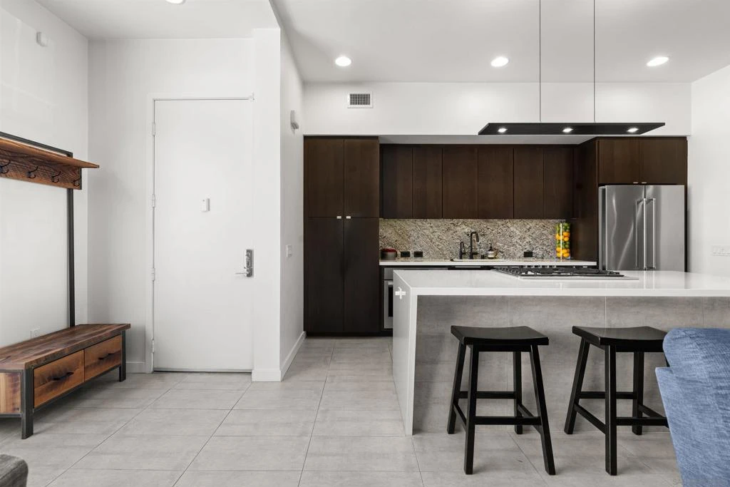 A seldom available Bankers Hill offering, this 1,689 sq ft residence is set within a peaceful, intimate 10-unit community and distinguished as the only three-bedroom home in the development. A distinctive and thoughtfully designed floor plan, seldom found in the neighborhood, offers exceptional flexibility — ideal for guests, work-from-home needs, or multigenerational living. Filled with natural light, the home is enhanced by dramatic sliding glass doors that fully retract, creating an elegant indoor-outdoor connection. Rooftop bay and ocean views provide a refined backdrop for entertaining or quiet retreat. Interior finishes reflect a curated design sensibility, including quartz countertops, a designer backsplash, upgraded designer porcelain tile and carpet throughout, and ceiling fans in every room. The kitchen is appointed with a five-burner cooktop with built-in motorized vent and a new KitchenAid refrigerator, while California Closets throughout deliver exceptional storage and organization. The residence offers two full bathrooms, with the primary suite featuring a porcelain soaking tub and striking floor-to-ceiling tile, creating a spa-like experience. A highly desirable 2.5-car garage and low HOA fees complete the offering. Ideally located just moments from Balboa Park, downtown San Diego, dining, and cultural destinations, this home presents a refined blend of space, privacy, design, and location in one of the city’s most coveted neighborhoods. A truly rare Bankers Hill offering.This thoughtfully designed 1,689 sq ft residence is located within a peaceful, intimate 10-unit community where properties are seldom available and stands out as the only three-bedroom home within the development. Featuring a distinctive floor plan rarely found in the neighborhood, the home offers exceptional flexibility, perfect for guests, work-from-home needs, or multigenerational living in one of San Diego’s most sought-after locations. Positioned to capture abundant natural light, the residence is further elevated by dramatic sliding glass doors that fully retract, creating a seamless indoor-outdoor connection and an open, airy living experience. Expansive bay and ocean views from the rooftop add an additional layer of rarity rarely found in Bankers Hill. The interior is enhanced with quartz countertops, a designer backsplash, upgraded designer porcelain tile flooring and carpet throughout. Ceiling fans thoughtfully added in every room. The kitchen is appointed with a five-burner cooktop featuring a built-in motorized vent and new KitchenAid refrigerator. California Closets throughout provide exceptional storage and organization. Includes two full bathrooms and is completed by a highly desirable 2.5 car garage, an exceptional feature in this central urban setting. Located just moments from the restaurants, cafés, and cultural amenities of Hillcrest and Bankers Hill with close proximity to Balboa Park,downtown San Diego, and major freeway access. Homes within this community rarely come to market, making this an exceptional opportunity.