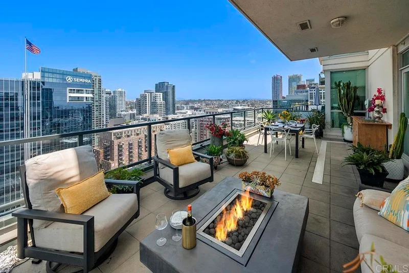 Experience luxury high-rise living at The Legend in this stunning 2 bed / 2 bath residence, perched 21 floors above the city. The spacious corner unit lined with windows in the main living areas opens the unit up to sweeping city & water views. The homes features a large primary suite with a generous walk-in closet and an ensuite, secondary bedroom with water views, modern kitchen boasting all stainless steel appliances, including a brand-new refrigerator and microwave, flowing seamlessly into a dedicated dining area and an inviting living room & seating area with built in wet bar. This home is also one of the few units in the building offering an expansive outdoor patio—an exceptional space for entertaining guests, relaxing under the open sky, and taking in sparkling skylines and breathtaking sunsets creating the perfect backdrop day and night. Located in the heart of downtown, The Legend places you near the Convention Center, vibrant bars and restaurants—plus, yes, Petco Park is truly right at your doorstep. Luxury, location, and unmatched views come together in this rare rental opportunity at The Legend.