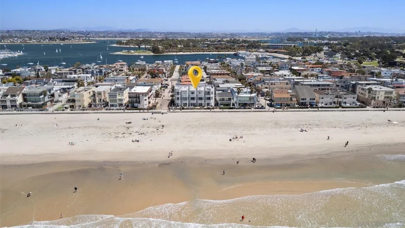 Welcome to your dream beach escape, a 2-bedroom, 2-bathroom oceanfront condo located directly on the Mission Beach boardwalk. This two-story residence offers unmatched views of the Pacific Ocean from nearly every room and provides direct access to the sand and surf just outside your door. Upstairs, the primary suite features a California king bed, wall-to-wall windows, and sliding glass doors that open to a private oceanfront balcony. The ensuite bathroom includes dual vanities, a walk-in glass shower with river rock flooring, and soothing coastal finishes. The second bedroom is equally comfortable, with a California king bed, smart TV, desk space, and an adjacent full bathroom with a combination tub/shower and dual sinks. The living area features a cozy fireplace and expansive windows that bring in natural light and fresh ocean air throughout the day. A TV is located in each room for added comfort and convenience. Please note, pets are not permitted in this home. The kitchen is complete with modern appliances, granite countertops, and a center island ideal for prepping meals. There is kitchen bar seating for four and a separate dining table. Additional amenities include in-unit washer and dryer, air conditioning, and a small designated parking space in front of the garage. Whether you’re here for work, rest, or play, every detail is designed to make your stay feel exceptional. Sleeping Accommodations (Maximum Occupancy 4): Bedroom 1 - 1 King bed Bedroom 2 - 1 King bed - There are a total of 2 bathrooms