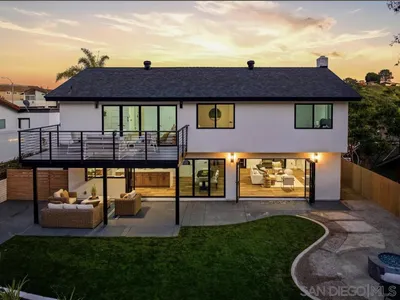 Experience elevated living in this stunningly renovated home in the heart of University City, just minutes from La Jolla beaches, premier dining, shopping, and coastal attractions. Designed with both elegance and comfort in mind, this residence has been completely transformed from top to bottom. Step inside to an expansive open-concept layout filled with natural light, luxury vinyl flooring, new windows, new electrical panel, new roof, and a statement fireplace that anchors the main living space. The chef-inspired kitchen serves as the centerpiece of the home, showcasing gorgeous quartz countertops, custom finishes, and seamless flow into the main living areas. A bedroom and full bathroom on the main level offer added flexibility for guests, multigenerational living, or a home office. Designed for effortless indoor-outdoor living, Cantina doors open to both the front and backyard, creating a true entertainer’s setting complete with a gas firepit offering many spaces to gather. The primary suite is a standout retreat, featuring its own 10ft Cantina door that opens to a large private deck with serene mountainside views and lush greenery, offering a peaceful indoor-outdoor escape. Every detail has been thoughtfully curated to deliver a modern, sophisticated aesthetic with timeless appeal.