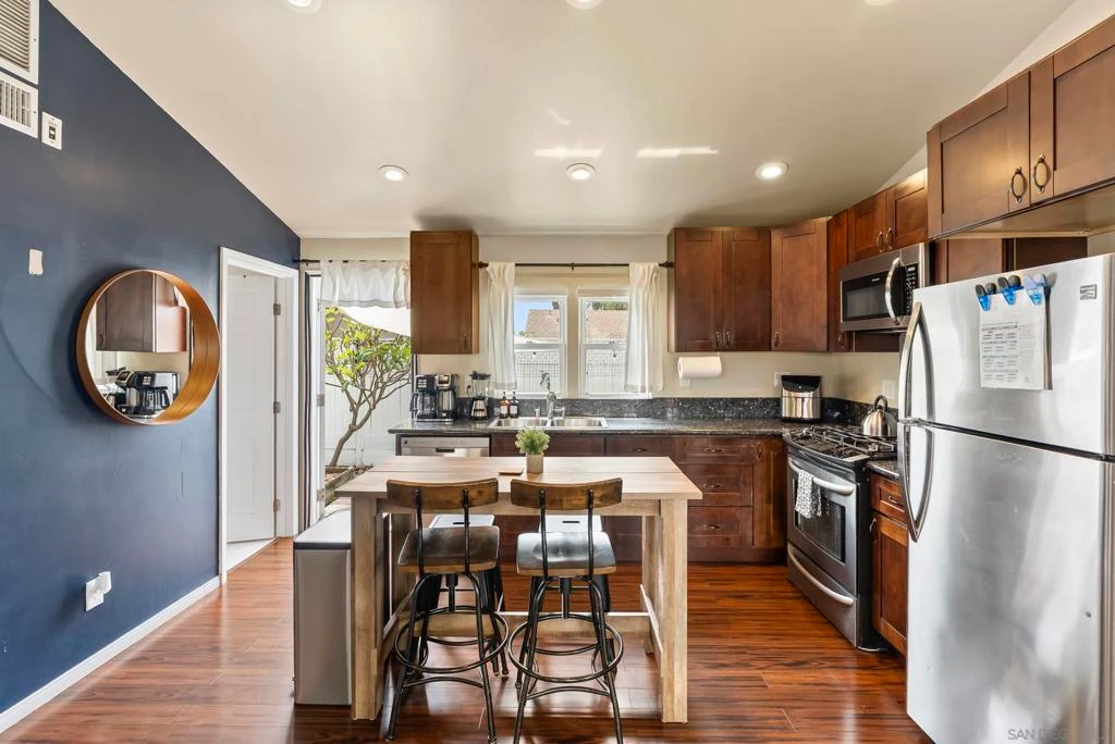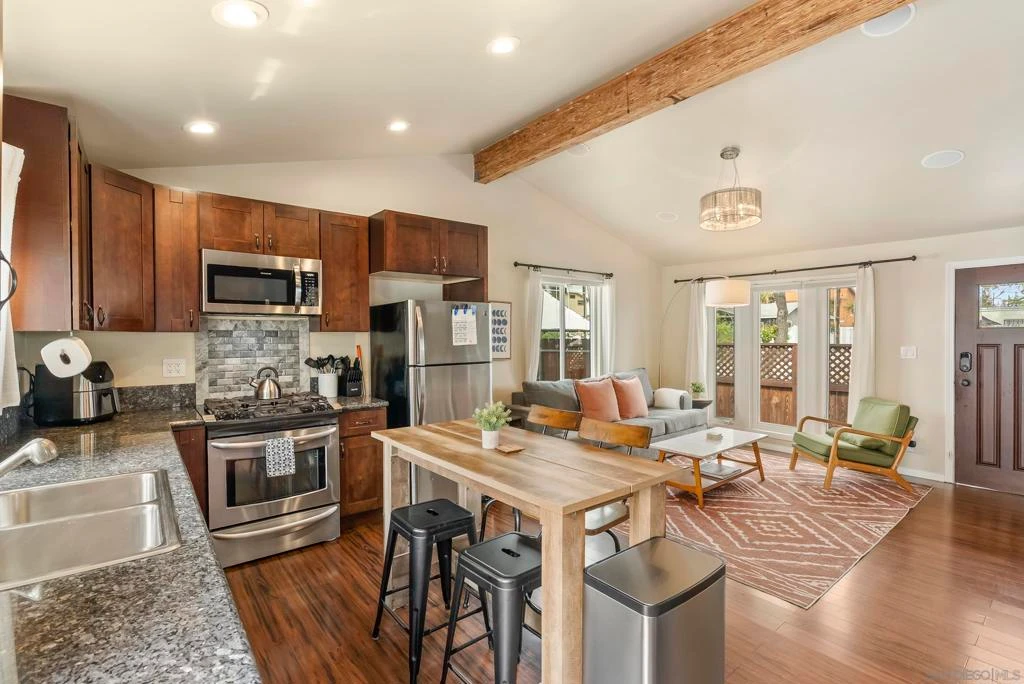 Charming cottage in City Heights located just minutes from Cherokee Point Park, offering convenient access to outdoor recreation, playgrounds, and open green space. The home is also close to, cafés, dining and nightlife of North Park, and the cultural attractions of Balboa Park. Provides easy connections to Interstate 805 and Interstate 15. Downtown’s vibrant Gaslamp Quarter is only about 15 minutes away. Inside, the home features an inviting open-concept kitchen and living area designed for comfortable living and effortless entertaining. The wraparound backyard provides plenty of space for raised garden beds, and outdoor seating, perfect for enjoying San Diego’s year-round climate. The detached garage has been enclosed and includes air conditioning, creating a versatile space that can function as a detached bedroom, home office, creative studio, or entertainment room. Above the garage, a rooftop patio offers a unique place to unwind while enjoying beautiful sunset views with sightlines stretching all the way to Mexico. Whether you’re looking for a charming primary residence for a small family or a property with strong potential as a short-term rental, this City Heights home presents an excellent opportunity to enjoy the best of San Diego living. Seller's were previously operating as a short-term rental, ask about income potential and don't miss this opportunity!