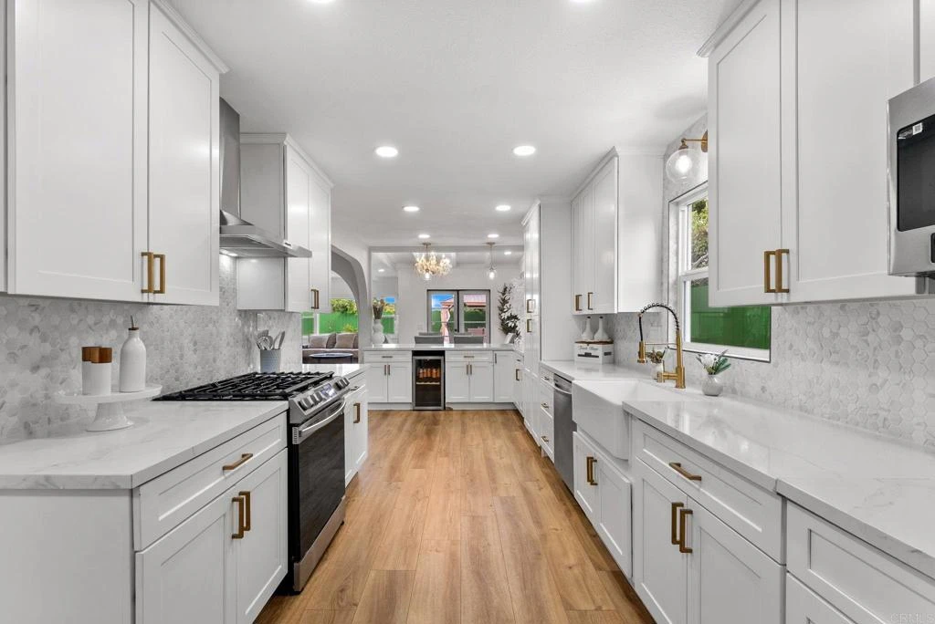 Beautifully remodeled and thoughtfully designed, this 5-bedroom, 4-bath home offers exceptional flexibility with a primary bedroom and en-suite bathroom on the main level, making it ideal for single-level living, multigenerational needs, or guests. The open, light-filled layout features upgraded vinyl flooring, designer finishes, and large windows throughout. The remodeled kitchen anchors the home with quartz countertops, custom cabinetry, and stainless steel appliances, flowing seamlessly into the main living spaces for easy everyday living and entertaining. The downstairs primary suite opens directly to the backyard and includes a walk-in closet and a spa-inspired bath with double vanity and glass-enclosed shower. A second primary suite and three additional bedrooms provide outstanding versatility. Outside, enjoy a large, flat backyard with room to relax, play, or entertain an ideal extension of the home. Centrally located in Clairemont, this home offers easy freeway access, nearby schools, parks, shopping, and dining, combining convenience with comfort in one of San Diego’s most accessible neighborhoods.
