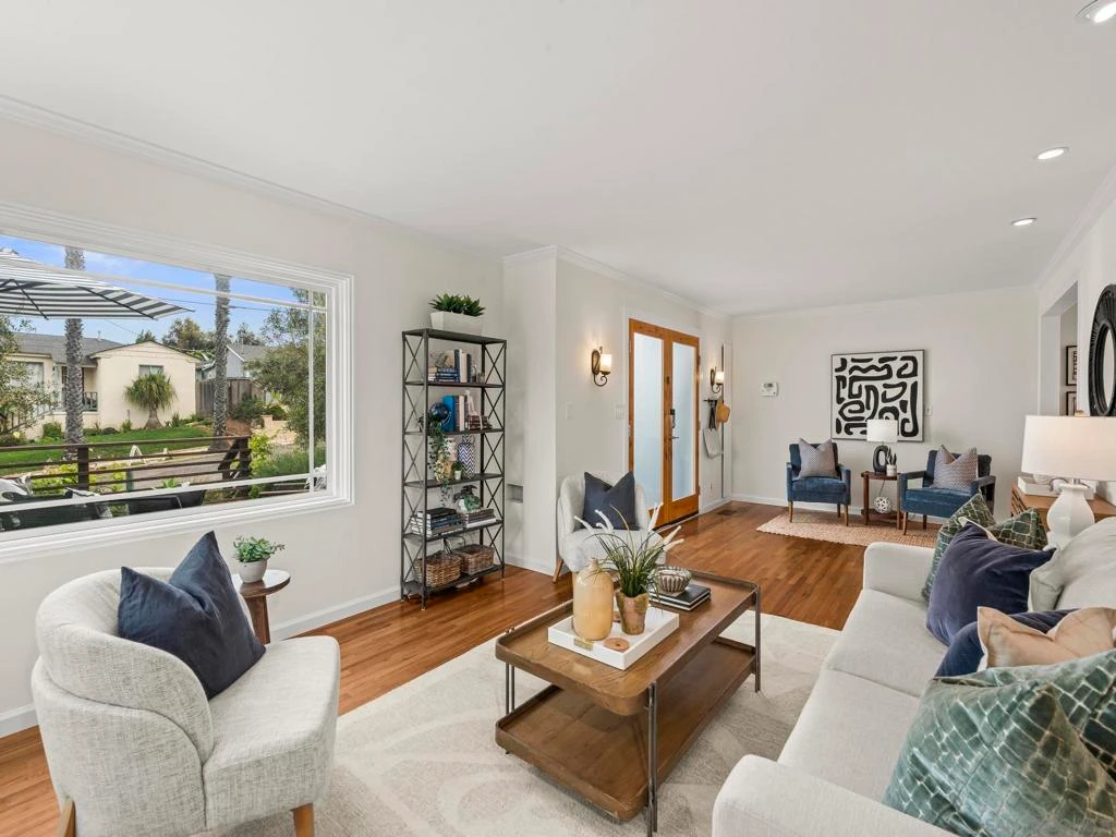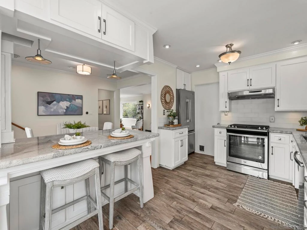Located in the heart of Point Loma, 4125 Tennyson Street is a charming 3-bedroom, 3-bath home that blends indoor comfort with outdoor living. Spanning 2,009 square feet, the multi-level layout creates natural separation between living, sleeping, and entertaining spaces, along with a versatile flex space ideal for a home office, gym, or guest setup. Inside, the home features a bright, functional layout with hardwood floors and a well-designed kitchen complete with a large center island, bar seating, granite countertops, and stainless steel appliances. Two bedrooms are en-suite, both with walk-in closets, including a spacious primary filled with natural light. Situated on a 6,500 sq ft lot, the property offers usable outdoor space and ADU potential. The home is designed with a natural flow for entertaining, connecting the front deck off the main living area with a private backyard and patio, creating multiple spaces to gather, relax, and host. Additional highlights include central A/C, solar, and alley access with carport parking. Conveniently located near local dining, coffee shops, beaches, and Liberty Station, this home puts you close to everything Point Loma and Ocean beach has to offer.