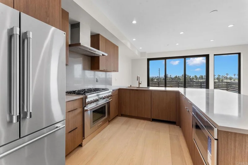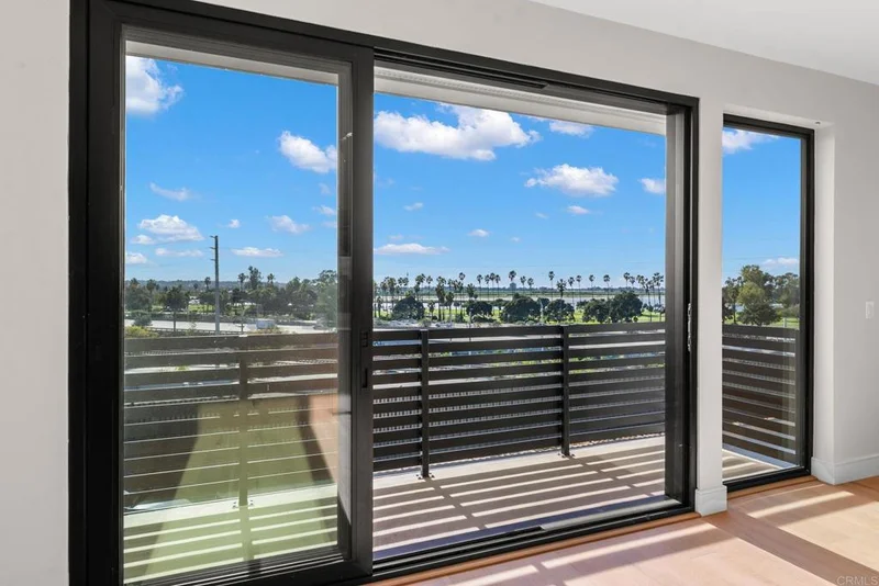 4212 Tonopah is a new construction luxury townhome in the Bay Park neighborhood of San Diego. 4212 is a corner unit with a stunning panoramic view of the bay and beyond! Perfect for enjoying sunsets and summertime fireworks. Features an open concept layout with designer touches, including a large kitchen with bar seating, solid surface quartz countertops / matching backsplash, and custom inset European slab cabinets. Brushed gold kitchen hardware, Thermador appliances, custom glass wall, floating iron staircases, engineered hardwood floors, and stylish lighting fixtures. The space is bathed in natural light from oversized windows and floor-to-ceiling balcony slider doors. Spacious bedrooms all with on-suite bathrooms. The large private garage (2 side by side parking spots) is set up for EV charging and home comes with owned solar. Comes with an upgraded home warranty (2-10 Home Warranty). Great central location provides easy access to transit, local dining, coffee shops, and the expansive Mission Bay Park, a 4,600-acre oasis perfect for biking, jogging, picnicking, and water sports. The expanded Blue Line (light rail), short walk away, connects to Downtown, UCSD, SDSU, UTC, Sorrento Mesa and beyond. Less than a 10 minute bike ride to USD. Project is VA approved.
