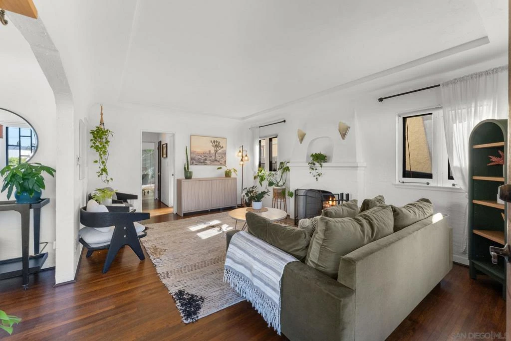 Tucked north of Adams Avenue in the heart of Normal Heights, this charming 1929 Spanish blends timeless character with thoughtful modern updates in one of San Diego’s most walkable neighborhoods. Set behind lush, drought-conscious landscaping, the home welcomes you with classic architectural details including textured stucco, arched accents, and original windows that fill the space with natural light. Inside, the living room exudes warmth and style with hardwood floors, coved ceilings, and a statement fireplace that anchors the space. The dining room showcases original built-ins and an inviting layout, perfect for both everyday living and entertaining. The updated kitchen offers a clean, modern contrast with sleek finishes, ample storage, and a functional flow. Both bedrooms are well-sized and filled with natural light, while the bathroom maintains its vintage charm with a tasteful edge. The bedrooms also have direct access to the private backyard which is a nice touch and rare for older homes. Step outside to a private backyard oasis designed for the San Diego lifestyle. Enjoy multiple outdoor living areas including a spacious deck, spa, and low-maintenance turf, all surrounded by mature landscaping and ambient lighting—ideal for relaxing evenings or hosting friends. Just moments from the vibrant shops, cafés, and restaurants along Adams Avenue, this home offers the perfect balance of historic charm, modern comfort, and unbeatable walkability in one of San Diego’s most sought-after neighborhoods.