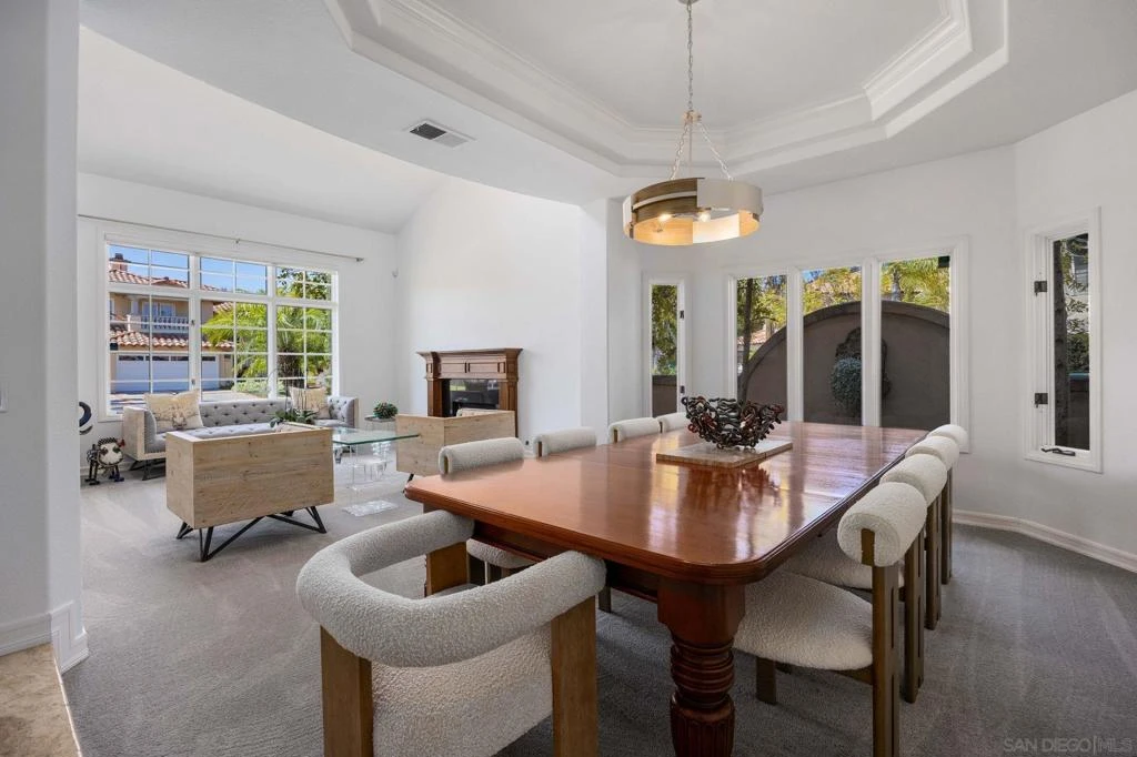 Tucked away on a quiet cul-de-sac in Carmel Valley, this home sits on one of the largest lots in the neighborhood and offers an ideal blend of space, functionality, and lifestyle—just moments from Ashley Falls Elementary School, parks, and greenbelts. When you enter the home, you are greeted by vaulted ceilings and reception space. The open layout features a formal dining & living room. The spacious family room flows seamlessly into the kitchen, complete with stainless steel appliances, a double oven, and ample space for everyday living and entertaining. You'll also find a dedicated office space, a convenient downstairs suite, designated laundry room, and a 3 car garage. Upstairs includes an additional office/media room, two ensuite bedrooms, and a private primary retreat with a balcony overlooking the backyard. The spa-inspired primary bath features a soaking tub, double-sided fireplace, walk-in shower with dual shower-heads, dual vanities, and a custom walk-in closet. Step outside to your own private oasis—designed for year-round enjoyment. The expansive backyard features three outdoor firepits, a built-in barbecue with grill and wine refrigerator, outdoor heaters, multiple lounge areas, and a European-inspired pool and spa with tranquil waterfalls. A custom-built pergola completes the space, creating the ultimate setting for entertaining or relaxing. With no HOA, owned solar, and an unbeatable location, this is a rare opportunity to own a truly special home in one of North County’s most sought-after communities. Mello Roos scheduled to end next year!