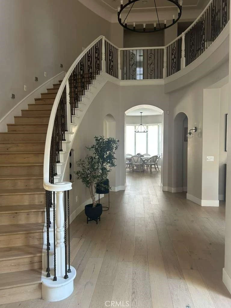 This is a modern Spanish style home in the highly desirable Amador neighborhood of Ashley Falls. This fully furnished residence has been thoughtfully updated and offers a blend of luxury, comfort, and functionality just bring your clothes and move right in. Inside, the home features soaring 25-foot ceilings, an impressive formal living room, new wide plank white oak flooring, 5 inch baseboards, and a stunning curved staircase with custom wrought iron railings. A dedicated home office and formal dining room with French doors open to a charming courtyard with a wood burning fireplace, creating seamless indoor and outdoor living. The expansive family room with an attached game room flows into a chef’s kitchen equipped with a Viking stove, quartz countertops, designer backsplash, freshly painted cabinetry, new sink and faucet, and a convenient butler’s pantry perfect for entertaining. Upstairs includes three in suite bedrooms, a versatile loft media room, and a luxurious primary suite featuring built-ins, a romantic fireplace, cozy sitting area, and custom closet. The spa inspired primary bathroom showcases quartz countertops, a freestanding tub, modern fixtures and lighting, a tile shower with an upgraded shower system, and premium tile flooring. Step outside to your private resort style backyard, complete with a heated lagoon style pool, rock slide, Jacuzzi, outdoor shower, lush landscaping with fresh flowers and exotic fruit trees, and a Sonos outdoor sound system. Located near award-winning Torrey Pines High School, Canyon Crest Academy, The Village at Pacific Highlands Ranch, Del Mar Highlands, and One Paseo, this home offers the best of luxury living in a prime coastal location.