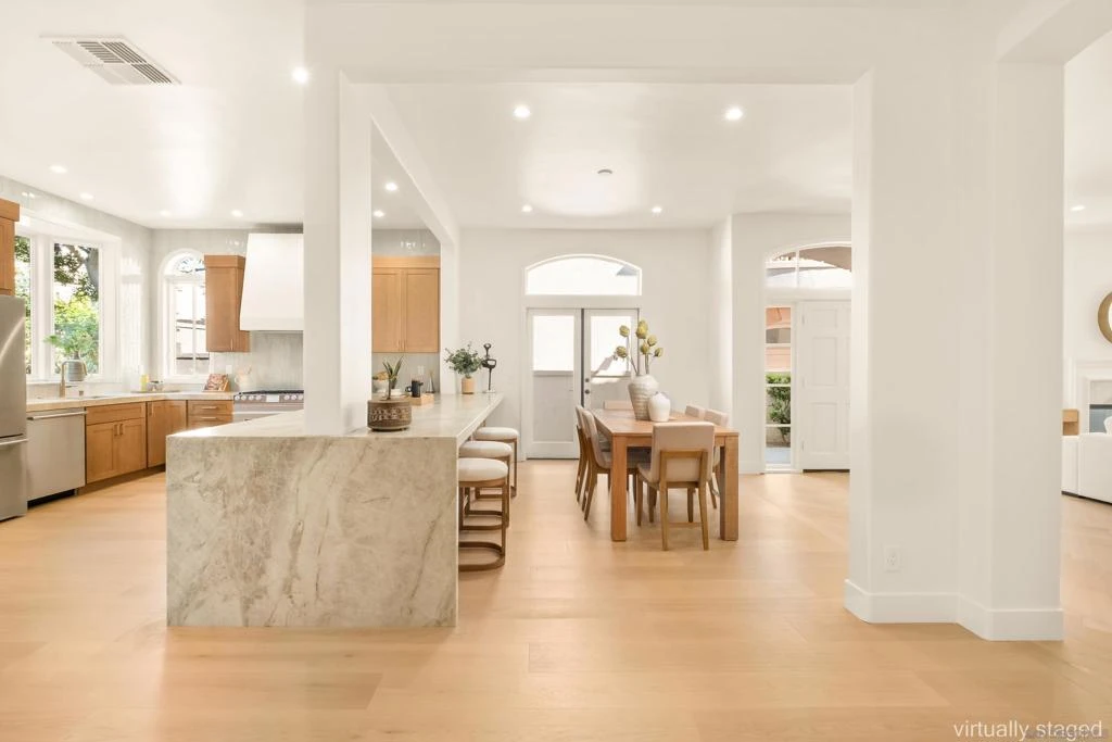 Welcome to one of the most desirable homes in Casabella. This beautifully remodeled 4-bedroom, 3.5-bath residence lives like a detached home and blends luxury with everyday comfort. From the rich wood floors with herringbone accents to the chef’s kitchen featuring Taj Mahal quartz and Thermador appliances, every detail has been carefully curated. Three fireplaces and a custom staircase add warmth and character throughout. The primary suite is designed as a private escape, complete with a walk-in closet, coffee and wine bar, dual-sided fireplace, and its own patio with peaceful views. Enjoy indoor-outdoor living with a charming patio perfect for al fresco dining, plus a 2-car direct-access garage and thoughtfully designed drought-tolerant landscaping. Perfectly situated just minutes from world-class shopping and dining at UTC, scenic parks, and major freeways, this home effortlessly combines serene privacy with unparalleled accessibility.