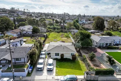 Shovel-Ready Investment Opportunity! Plans, permits, and fees paid!! 7-UNITS total, plans allow for the construction of 6 new units, all ADUs in the form of 3 new duplexes behind the existing home. Home is a 2-bed/ 1 bath in the quiet neighborhood of Valencia Park. The plans for every unit in the duplexes are identical and include 3 bedrooms, 1.5 baths, and a one-car garage. Each unit is 1,176 sq. ft., and each garage is 185 sq. ft. 3 of the new ADUs will be affordable to moderate-income restricted units for 15 years. Long-term investment that allows for good rental income.