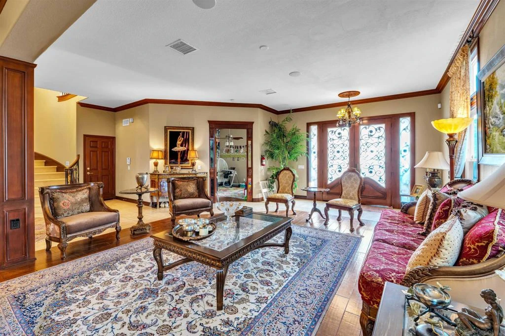 Cose distance to Grand Del Mar, Country Club & Golf Course, Close distance to CA Routh 56, & I-5, short distance to Sage Country Elementary, t 21 Tesla Solar Panels are fully paid Price reduced for a lucky family to own this 4,687 SQ/F luxurious 6 Bedroom, 6 Bath where a colonial architecture meets a breathtaking unobstructed view of Sunrise and Sunset with 180 degrees Golf Corse, valley and hills, natural habitat vegetations and trees, in the Carmel Valley Posticous Lexington most desirable neighborhood. This house has an exceptional layout with an in-home office and a large Bedroom conveniently on the ground level and explore the second floor by stepping up the circular Staircase. to the Master Suit with the privet balcony facing 180 degrees of breathtaking VIEW capturing the horizon and twinkling night light. or dipping into the jacuzzi style bathtub and relax. Enjoy the pleasure of cooking and entertaining in the large kitchen with an access to the outdoor BBQ and pool area. Large granite top Island with the Cooktop makes cooking a pleasure. The open floor plan in this house is most suitable for entertainment and creating a memorable moments. All bedrooms have large walking closits and priven bathrooms.