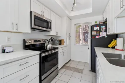 Tucked away in a quiet, private corner of the complex, this beautifully updated 2-bedroom, 1.25-bathroom condo in San Diego’s sought-after College Grove neighborhood offers the perfect blend of modern comfort, privacy, and an unbeatable location. Just minutes from SDSU, downtown, shopping, beaches, military bases, and schools, this centrally located gem keeps everything within easy reach while still feeling like a peaceful retreat. Inside, you’ll find a move-in-ready space featuring a fully remodeled kitchen with sleek quartz countertops and newer appliances—perfect for cooking and entertaining. The remodeled bathrooms add a fresh, contemporary touch, while newer windows fill the home with natural light and enhance energy efficiency. Enjoy cozy evenings by the fireplace or host gatherings on your expansive, oversized patio—an ideal outdoor escape. The oversized primary bedroom closet includes a professionally installed organizer, offering both style and exceptional storage.