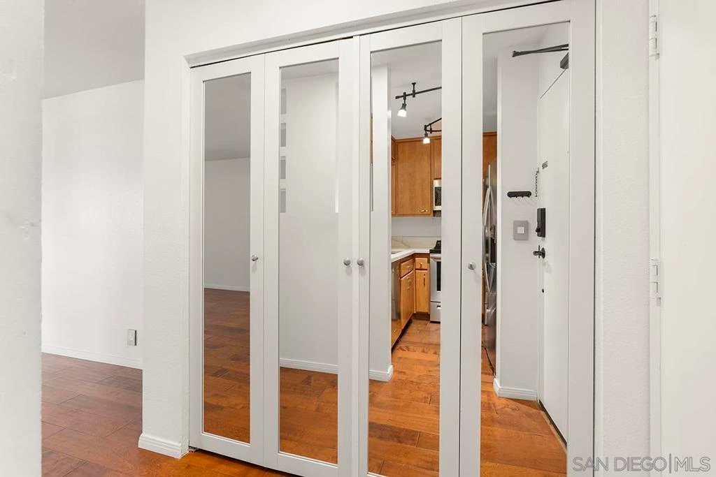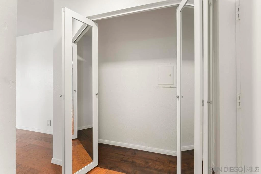 Don’t miss this beautifully remodeled condo in the heart of Mission Valley. Perfect for a first-time buyer or investor, this inviting home is tucked away in a quiet area of the community, overlooking a serene interior courtyard and peaceful pond with a water feature. Enjoy a cheery balcony with access from both the living room and bedroom—an ideal spot to relax and unwind. Inside, the highly updated interior features fresh paint, engineered birchwood plank flooring, ceiling fans in both the living room and bedroom, plus air conditioning and a Nest thermostat. The upgraded kitchen shines with newer cabinetry, quartz countertops, and stainless-steel appliances, including a refrigerator, dishwasher, stove, built-in microwave, and sink. The bathroom is equally impressive, offering a custom walk-in closet and a stacked washer and dryer. All appliances convey. Additional highlights include a covered carport space with a storage cabinet, along with a spacious hallway closet near the entry—perfect for use as a pantry. Bonus: this unit only shares one wall, and you have no neighbors below. Residents enjoy desirable amenities including a pool, jacuzzi, fitness center, sauna, and sundecks. The HOA covers water and trash, PLUS cable and Wi-Fi. The only utility you pay for is electricity. Ideally located near Fashion Valley Mall with easy access to shopping, dining, transit, and major freeways. The new owner will enjoy a front-row seat to the exciting Riverwalk Development, featuring 97 acres of parks, open space, and upcoming retail and grocery stores.