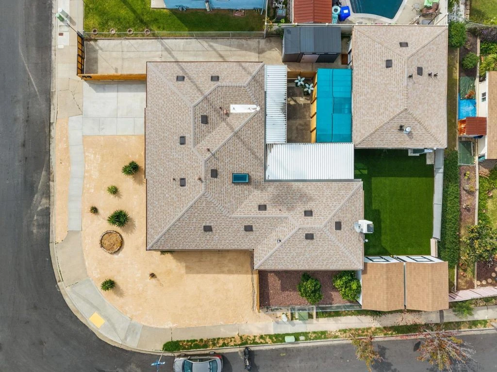 Two homes on one property in Rolando Park—featuring a fully remodeled 4-bedroom main residence and a detached, fully permitted 2-bedroom ADU on a quiet cul-de-sac in San Diego. This rare setup offers exceptional flexibility for rental income, multigenerational living, or private guest accommodations just minutes from San Diego State University and the restaurants, cafés, and boutiques of La Mesa Village. Completely renovated in 2024, the 1,748 sq ft single-level main home offers 4 bedrooms and 3.5 bathrooms with a bright open-concept layout designed for modern living and effortless entertaining. The spacious 300+ sq ft primary suite features a cozy electric fireplace, walk-in closet, and a luxurious en-suite bathroom with dual sinks and rain shower, plus direct access to a covered patio and backyard. The detached 600 sq ft ADU (built in 2024) provides a private 2-bedroom, 1-bath living space with its own patio—perfect for long-term rental income, Airbnb, extended family, or guests. Since purchasing the property, the owner has invested over $125,000 in additional upgrades, including new privacy fencing creating separate outdoor areas for each home, window coverings throughout, expanded cabinetry and a new refrigerator in the ADU kitchen, drought-tolerant landscaping, and three custom storage sheds. Whether you're looking to offset your mortgage with rental income, create space for extended family, or simply enjoy the versatility of two private homes on one property, this unique Rolando Park residence delivers a lifestyle and opportunity that seldom comes to market.