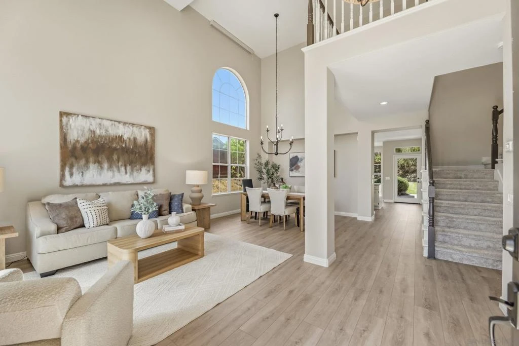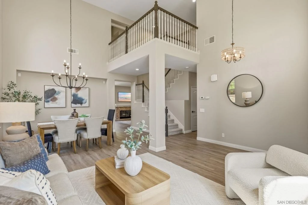 Welcome to your dream home in Park Village — where everyday living feels like a retreat. This stunning home sits on a spacious, private corner lot with fresh flooring, paint, fixtures, and hardware throughout. The soaring two-story great room, chef's kitchen, stone fireplace, and sun-drenched backyard create spaces made for both entertaining and unwinding. A main-floor optional bedroom/office and full bath add flexibility. Paid solar keeps costs low. And the best part? You're steps from the trails of Los Peñasquitos Canyon Preserve — San Diego's most beloved open space. This is Park Village living at its finest. Home Upgrades: Paid Solar: 16 panels Added unpermitted downstairs office 2022 (Builder option to add the bedroom in this model). Upgraded downstairs bath and upstairs kids bath 2022. New blinds throughout, exterior home painting- all done between 2022-2024 . Interior painted and new water heater 2026. New Luxury Vinyl Plank flooring 2026 New carpet 2026. New light fixtures in entry, dining room and primary bath 2026. New ceiling fan with light in family room 2026. New interior door handles 2026. New kitchen, primary bathroom and laundry cabinet hardware 2026. Schools: Park Village Elementary, Mesa Verde Middle, Westview High. No HOA. No Mello Roos