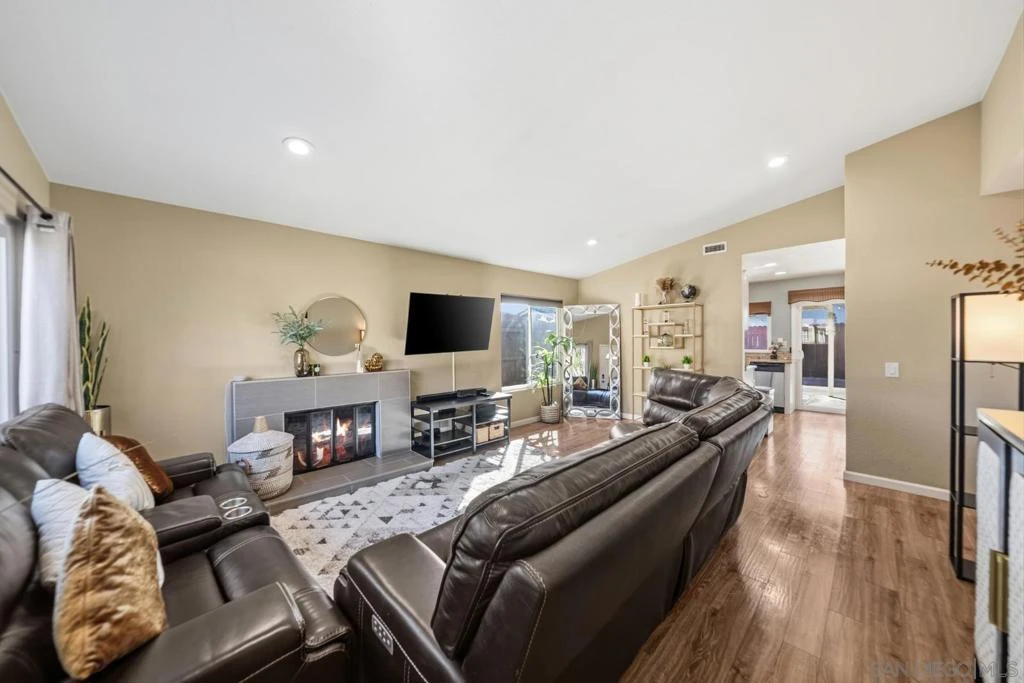 This single-family home offers comfort, space, and efficiency in a desirable central location. With owned solar, you’ll enjoy energy savings while living in a bright, inviting space filled with natural light from large windows and soaring cathedral ceilings. The living room features a cozy fireplace, creating the perfect place to relax, while the spacious dining area with an oversized sliding door seamlessly connects indoor and outdoor living. The primary bedroom also has glass sliders that open directly to the backyard. Step outside to a private, backyard designed for both relaxation and entertaining. Enjoy a large covered patio and mature fruit trees, all set on a generous lot that offers plenty of space to unwind. The front and backyard feature low-maintenance, drought-tolerant landscaping for easy living. Additional highlights include an attached two-car garage and convenient freeway access, making commuting a breeze. Ideally located just 15 minutes from downtown and Balboa Park, and more. This home combines comfort, convenience, and San Diego living at its best.