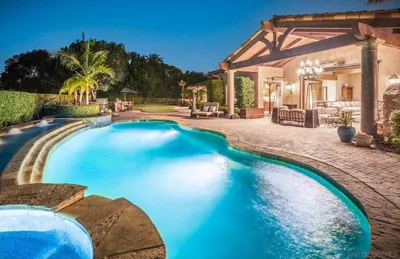 Experience luxury living in this stunning custom-built modern home, set on over 1.5 acres of meticulously landscaped private grounds in the exclusive Santaluz community. This residence epitomizes sophisticated living, designed for comfort and grand entertaining. Enter through a charming courtyard to an expansive open floor plan that blends elegance and functionality. The heart of the home is the deluxe kitchen, featuring a massive quartz island, top-of-the-line appliances, and upgraded countertops. This culinary haven seamlessly connects to an oversized nook and spacious family room, both flowing gracefully to the stunning outdoor areas. The kitchen also includes a state-of-the-art refrigerator and freezer, with a water softener in the garage. Exceptional amenities include a fully equipped indoor sports court with custom soft flooring, basketball hoops, a performance stage, and locker rooms. This versatile space can transform into a 16-car garage, ballroom, or premier entertainment area. Host unforgettable gatherings in the fully equipped sports bar with a wine room and enjoy movie nights in the luxurious home theater, featuring a 14.5' x 8' screen. The backyard is a golf enthusiast’s dream with a putting green, tee boxes, and artificial turf designed by Back Nine Greens. The stunning saltwater pool, adorned with Pebble Tec lining and glass mosaic tiling, includes water features and a large infinity spa, creating a serene oasis for relaxation. This custom-built masterpiece in Santaluz offers an unparalleled lifestyle in one of San Diego's most prestigious communities.
