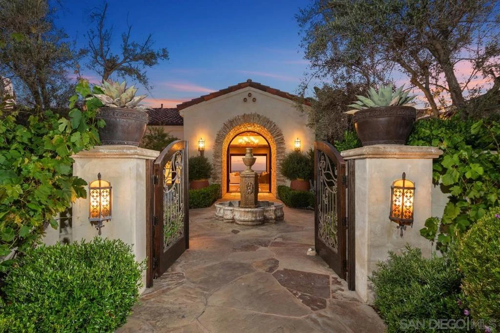 Best location in Santaluz! Panoramic unobstructed ocean and mountain views, this elegant and move in ready home is positioned above the 10th fairway at 610 feet of elevation. Solid craftsmanship of tile, carpentry and masonry, soaring ceilings and open floor plan are magnificent for entertaining. The 2024 kitchen remodel includes updated countertops and fixtures. Media room, gym, game room, 2 wine cellars, and 6 fireplaces are winning features. Walkable to Santaluz's clubhouse and luxurious amenities.