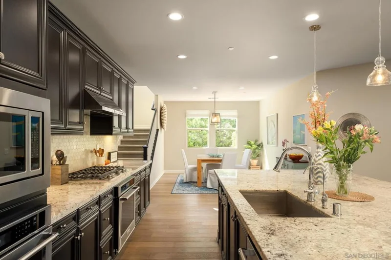 Welcome to 7964 Auberge Circle, an elegant two-story retreat in the exclusive, gated 55+ community of Auberge at Del Sur. Upon entering the 2,923 sq. ft. residence, you’re immediately greeted by an abundance of natural light, soft neutral tones, and warm natural wood flooring. At the heart of the home is a chef-inspired kitchen featuring top-of-the-line appliances, rich custom cabinetry, granite countertops, and a generous center island with seating. The kitchen seamlessly connects to the expansive great room, offering ample space for relaxation and gatherings. Glass doors disappear and open to a stunning outdoor/covered living space, complete with an outdoor fireplace, seating areas, and lush landscaping—an idyllic setting for entertaining or unwinding in total privacy. The main-level primary suite is a luxurious sanctuary with direct access to the backyard. This spacious room features a comfortable sitting area, an oversized walk-in closet, and a spa-inspired bath with dual vanities, a soaking tub, and a glass-enclosed shower. Also on the main floor is a dedicated dining room ideal for intimate dinners or hosting guests, a private home office, a guest bedroom with en-suite bath, and a full laundry room. The second level offers a peaceful escape with a generous bonus room perfect for a fitness area, media room, or creative space. An additional guest bedroom with a full bath completes the upstairs, all framed by sweeping views of Black Mountain and west-facing sunsets over rolling hills. See Supplement... Auberge residents enjoy access to a spectacular 12,000+ sq. ft. clubhouse featuring a fitness center, pool, spa, and resort-style amenities. With privacy, security, and close proximity to top-tier shopping, dining, and major freeways, this home delivers the best of serene living and modern convenience. Welcome home.