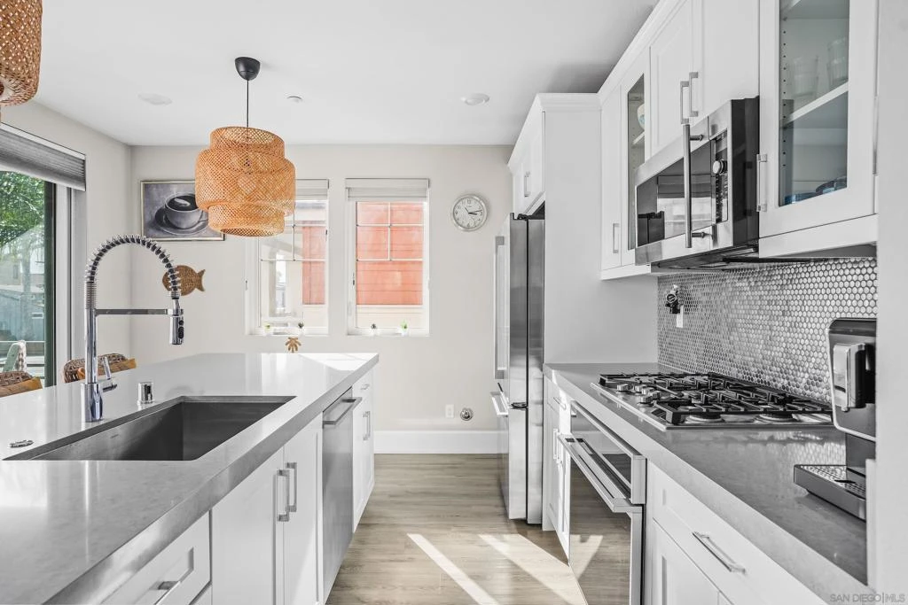 Modern Lock and Leave Mission Beach home built in 2020 and always owner-occupied. Features high-end finishes, open layout, and a rare 2-car garage. Guest room fits bunk bed for kids, and a long hallway offers master bedroom privacy great for hosting. HOA limited insurance, solar panels low utilities under $200/month. No rental restrictions with strong demand in the area. Opportunity for families or investors. Prime location near beach and bay! Night time security guard, brand new A/C.