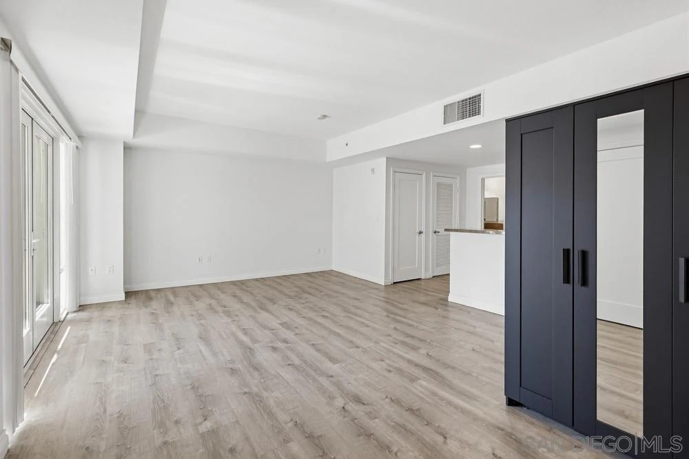 Exceptional value in downtown San Diego! One of the larger studio floor plans in the building with a spacious layout comparable to many one-bedroom units. Upgraded kitchen with granite countertops and stainless steel appliances, in-unit stacked washer/dryer, central A/C, and walk-in closet. Private balcony for quiet outdoor use. Includes a premier ground-level parking space with direct access to the lobby and fitness center. Located in the desirable Nexus community near Petco Park, Gaslamp Quarter, dining, and entertainment. Unit #201 offers approximately 734 sq. ft., making it one of the more spacious studio layouts in Nexus and highly competitive with smaller one-bedroom units. The interior is nicely upgraded and move-in ready, including a dedicated closet with stacked washer/dryer. The balcony is compact but offers excellent privacy, providing a more quiet and sheltered outdoor space. The assigned parking space is a premium ground-level location with direct access to the lobby and fitness center—an everyday convenience that stands out within the building. For buyers prioritizing interior space, functionality, convenience, and overall value, this unit presents a compelling opportunity in today’s market.