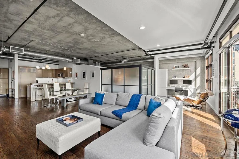Stunning views of Petco Park grace every window in this chic one-bedroom, one-and-a-half-bathroom condo. It also benefits from 14ft vaulted ceilings that infuse the space with an open, airy vibe. Rental rate is for a minimum 6-month lease. Entertaining is easy here, and not just because of the in-unit viewpoint of Padres games, concerts and events, this space boasts a dining table with seating for six next to a built-in dry bar fully stocked with all the necessary tools and glassware, complete with a wine fridge. Alternate seating at the kitchen counter, and an oversized sofa in the living room in front of a sizeable Smart TV, add to the entertainment appeal in the stylish space. The plush L-shape sofa also doubles as a queen-size sleeper sofa, ideal for overnight guests who will also appreciate the nearby powder bathroom. The expansive bedroom suite features frosted sliding panels that can be positioned for complete privacy or left open to turn the condo into one large, open concept space. Within, the suite boasts a luxurious king-size bed, Smart TV, walk-in closet with abundant storage space, and a roomy bathroom with a dual sink vanity and an ultra-spacious walk-in shower. Those looking to work from home will love the office nook equipped with a large desk housing two computer monitors and benefiting from ample natural light from nearby floor-to-ceiling French doors. This condo is located within the Park Loft building in the heart of East Village. Park Loft is located across from Petco Park, home of Major Legue Baseball’s San Diego Padres, and host to everything from baseball games to concerts to special events. This locale puts it in close proximity to a multitude of tasty spots to grab a bite and brew, and shopping opportunities galore. The nearby Harbor Drive Pedestrian Bridge also provides easy access to the San Diego Convention Center, Seaport Village, The Embarcadero, and all that they have to offer. Amenities in this building include secure underground parking, contemporary lobby with concierge, and 24-hour security with surveillance cameras. It also offers an updated fitness center, lush central courtyard with abundant greenery throughout featuring multiple seating areas, fire pits, community grilling stations and a chic clubhouse with a full kitchen, large Smart TV and abundant seating.
