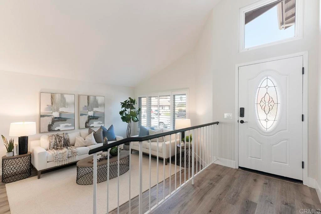 Freshly renovated quiet cul-de-sac Rancho Penasquitos home! You are greeted by vaulted ceilings and a formal entry connected to the formal living and dining spaces. The kitchen features rich white oak cabinets contrasted by the matte black hardware, stainless steel appliances, and variegated tile backsplash. Through the kitchen is another living space with a mosaic tile surrounded fireplace. Upstairs is where you can find the 3 bedrooms as well as the primary retreat. This primary suite has a spacious room accompanied by a walk-in closet and a sizable ensuite bathroom adorned with trendy fixtures and a large format tiled shower. Off the back of the home you will find a fully enclosed sunroom surrounded by stamped concrete and a luscious lawn with ample room from activities. If you are looking for an elegantly renovated home with soft natural tones flooded with natural light, look no further 8985 Talca Ct is the one!!!