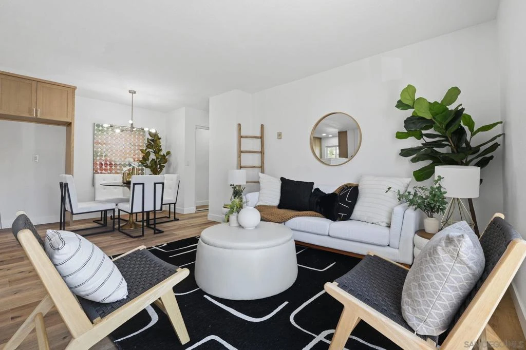 Welcome to this beautifully fully remodeled home in the highly desirable Rancho Peñasquitos community, where modern upgrades meet everyday comfort. Step inside to discover a bright and airy open-concept living space, enhanced by abundant natural light, fresh white interior paint, and stunning wide-plank wood-look vinyl flooring throughout. Extra-tall crisp white baseboards add a refined touch to the clean, contemporary aesthetic. The thoughtfully updated kitchen features light wood cabinetry with all-new brushed silver hardware, sleek white countertops, a stylish white backsplash, and brand-new stainless steel appliances including a microwave, oven, and dishwasher. Enjoy scenic views right from your kitchen window, creating a serene backdrop for daily living and entertaining. Both bathrooms have been fully remodeled with modern finishes, offering a cohesive and elevated feel throughout the home. Step outside to your private balcony—perfect for relaxing or enjoying the peaceful surroundings. Located in a sought-after neighborhood known for its top-rated schools, nearby parks, and convenient access to shopping, dining, and major freeways, this home offers the ideal blend of comfort, style, and location.