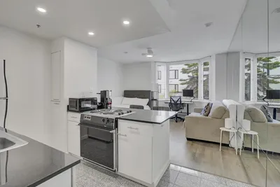 Sleek. Stylish. Smart. Welcome to an elevated studio retreat in the heart of San Francisco’s vibrant Lower Nob Hill. This fifth-floor gem blends boutique luxury with smart upgrades and modern functionality, including floor-to-ceiling windows, European wide-plank oak floors, and a layout designed to maximize space and light. The kitchen is outfitted with quartz countertops, a gas range, Calacatta quartz backsplash, and a Bosch counter-depth refrigerator. Enjoy the convenience of an LG washer/dryer combo and a sleek frameless glass shower in the spa-like bath. Custom touches include a Closet Factory wall-bed and organizer system that transforms the living space with flexible design, plus motorized Levolor shades for added comfort. Central A/C, a spacious walk-in closet, and a dedicated storage locker complete the package. Building amenities feature a rooftop deck with panoramic views and BBQ, secure bike and package storage, and smart Latch entry. Just steps from Polk Street’s shops, restaurants, nightlife, and close to Whole Foods, Trader Joe’s, parks, and transit—this is urban living at its best.