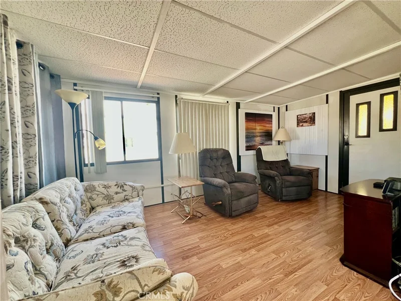 PRICE REDUCED!! OWN THE LAND! Located in Heritage Ranch highly desirable gated 55+ senior community. Enter the Laytin 1986 home into the living room and delight in its beautiful bright open floor plan & laminate wood flooring throughout. Kitchen open to the dining room with full size refrigerator, free standing electric stove & lots of cabinetry. Bathroom has shower tub combo & vanity area. The Large bedroom has its own entrance/exit. Enjoy a morning or afternoon beverage from your covered porch with stunning views of the mountains. Concrete driveway is big enough for 2 cars along with an improved spacious storage shed WASHER & DRYER INCLUDED. This is resort living at its best, The spacious home offers peace and tranquility and the opportunity to have great gatherings with family and friends. Don’t miss out the opportunity to own this beauty! This property is located near restaurants, grocery shopping, clinics and college. WATER, TRASH, BASIC CABLE TV and INTERNET INCLUDED in HOA monthly fee of approx. $218.00 & LOW TAXES. Community features included POOL, Jacuzzi, walking trails, billiards, shuffleboard, clubhouse, laundry facilities and MORE!! MINUTES From SOBOBA CASINO, DIAMOND VALLEY LAKE, and the 10 FWY, A fantastic opportunity that will not be available for long. Call today for your private appointment to view this amazing property.
