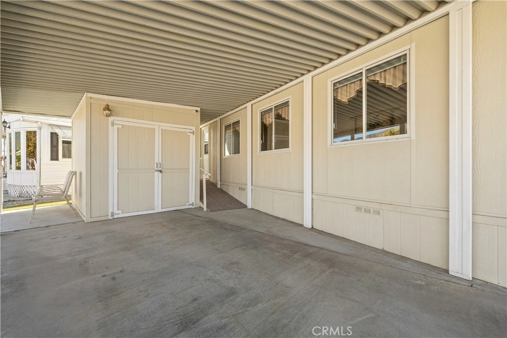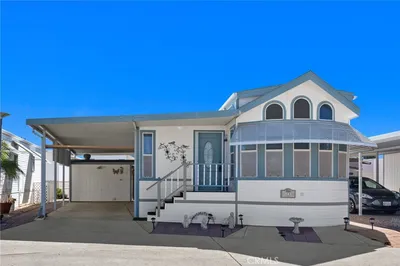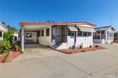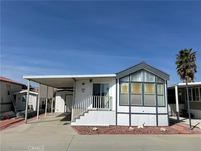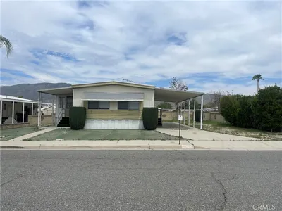 Welcome to Heritage Ranch, a gated 55+ active senior community offering comfort, convenience, and resort-style amenities. This charming 1985 park model with a thoughtfully designed addition offers approximately 700 sq ft of well-utilized living space with stunning views of the San Jacinto Mountains. The upgraded kitchen features updated cabinetry, granite countertops, stainless steel appliances and sink, and a stylish tiled backsplash, complemented by hardwood and tile flooring throughout and ceiling fans for year-round comfort. The spacious bathroom includes an enlarged corner shower, and the home is equipped with a tankless water heater. Additional highlights include an indoor laundry room with storage, handicap ramp access, and an oversized storage shed providing ample space for tools, hobbies, or seasonal items. Washer, dryer, and furniture are included, making this home truly move-in ready. Heritage Ranch offers amenities galore, including a clubhouse, gym, indoor spa, outdoor pool, recreation area, and library, creating an ideal setting for an active and social lifestyle. Enjoy low taxes and a low HOA of $218/month, which includes water, sewer, trash, basic cable, and internet. Conveniently located near shopping and medical offices, this home is the perfect blend of comfort, accessibility, and community.