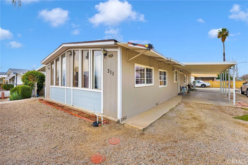 Come this see beautiful manufactured home in a 55 plus community. The home is on a corner lot and has two entrances with a huge driveway and a gated entrance. The home has 2 bedrooms and 2 full bathrooms. The flooring is new and the home has been painted inside. The home offers AC splitters in each room with its own remote control. The home features a laundry room with an individual room. The garage is detached from the home. The neighborhood is extremely quiet and the home is close to parks, retail stores, restaurants, coffee shops, grocery stores and SOBOBA CASINO. Come see this home and make it yours today.