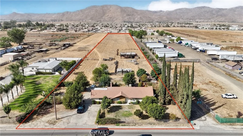What a find! Almost 5 acres of flat land, located in the heart of San Jacinto/Hemet! The property features a single story home that has almost 1600 sf. of living space, 3 bedrooms, 2 bathrooms, living room, dining room, and bonus/laundry room. The opportunities are practically endless with this amazing parcel...let your imagination soar!