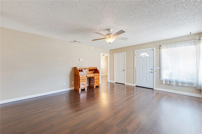 Charming Single-Story Home on a Corner Lot with Mountain Views! Welcome to this well-cared-for 3-bedroom, 2-bath single-story home located in a quiet and established San Jacinto neighborhood. Thoughtfully designed with an open and inviting layout, the home features a spacious living room that flows seamlessly into the dining area and bright kitchen—perfect for everyday living and entertaining. The kitchen is equipped with granite countertops, stainless-steel appliances, and ample cabinetry, creating a functional and stylish space for cooking and gathering. Rich hardwood flooring runs throughout the home, adding warmth and continuity to the living areas. The primary suite offers a private upgraded bathroom featuring a walk-in bathtub, providing comfort, accessibility, and convenience. Two additional bedrooms offer flexibility for guests, family, or a home office. Situated on a desirable corner lot, the property provides outdoor space with beautiful mountain views and plenty of potential for gardening, relaxing, or future enhancements. Low taxes and NO HOA make this a true gem!