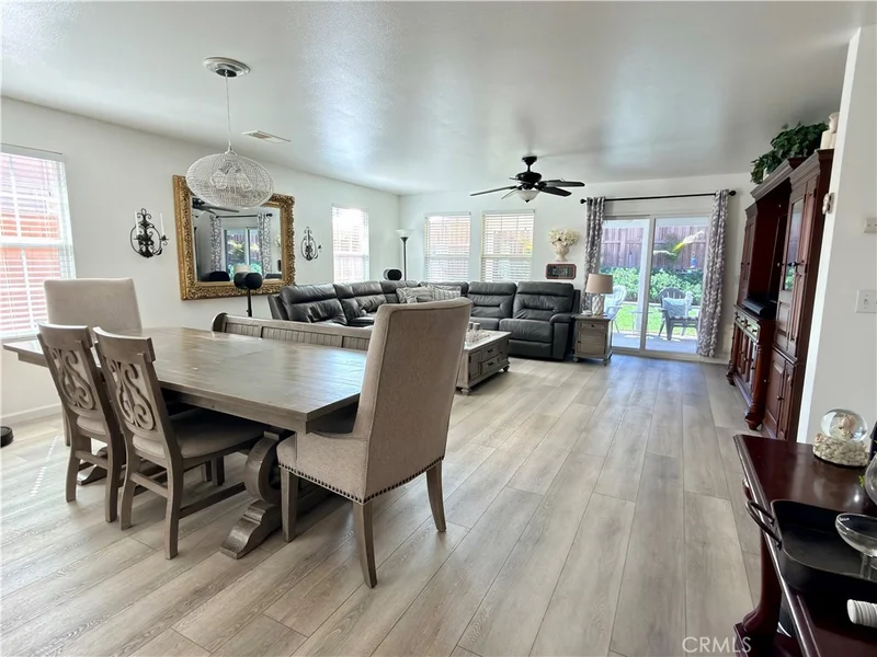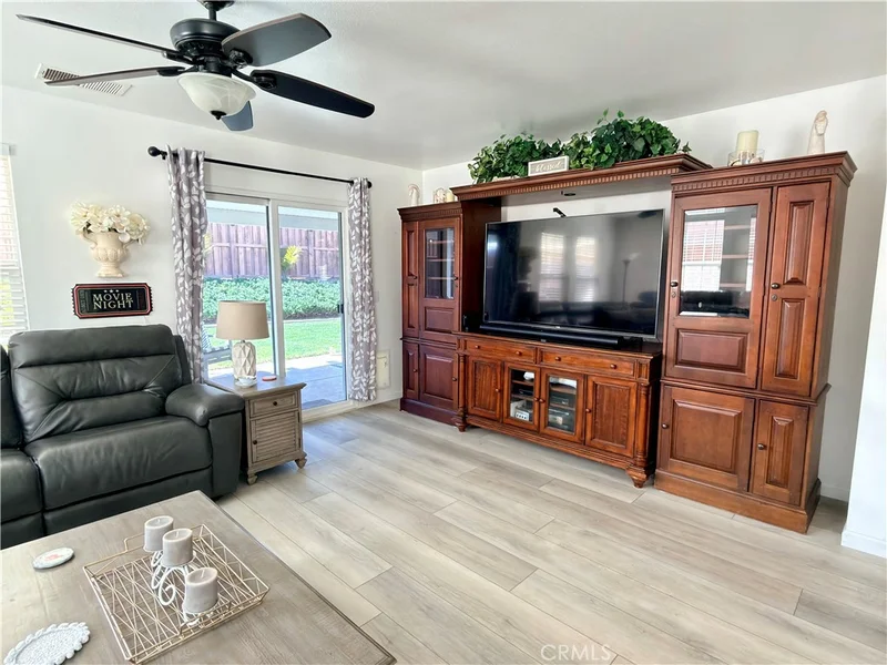 Welcome to refined single-story living in the desirable Cove community of San Jacinto. Thoughtfully upgraded and beautifully maintained, this residence offers a sophisticated blend of modern design, comfort, and energy-conscious living. Elevated Living & Designer Kitchen: Step inside to elegant cream-toned luxury vinyl plank flooring that flows seamlessly through an open-concept floor plan designed for both everyday living and effortless entertaining. At the center of the home is a stunning remodeled kitchen featuring quartz countertops, crisp white cabinetry, and generous prep space. The kitchen opens to the dining area and an expansive living room, creating an inviting setting ideal for gatherings, relaxation, or a home theater experience. Exceptional Storage & Organization: Every bedroom, including the spacious primary suite, has been enhanced with custom Closet World systems designed to maximize organization and functionality. The garage continues the theme with built-in cabinetry that provides abundant storage while maintaining a clean, streamlined workspace. Private Primary Retreat: Positioned toward the rear of the home for added privacy, the primary suite offers a peaceful retreat and features a beautifully remodeled en-suite bathroom with contemporary finishes and thoughtful design. Energy-Forward Living: This home is equipped with a robust 41-panel solar system paired with two Tesla Powerwall batteries, providing supplemental energy storage and efficiency. The system includes 17 owned panels and 24 leased panels, offering modern energy solutions rarely found in the area. Outdoor Comfort: The backyard creates a welcoming outdoor escape with a custom patio cover and an above-ground spa, perfect for relaxing evenings or entertaining guests. Parking & Functionality: A two-car garage with custom storage cabinetry is complemented by an extended driveway offering additional parking for guests or multiple vehicles. Community & Location: Located in The Cove, residents enjoy proximity to nearby parks, scenic hiking trails with mountain views, and local schools including San Jacinto Leadership Academy. The neighborhood offers a peaceful residential setting while remaining conveniently close to shopping, dining, and everyday amenities. Experience a home where thoughtful upgrades, modern efficiency, and comfortable living come together.