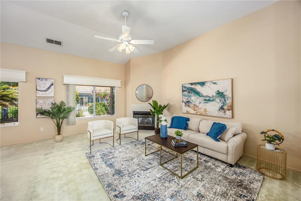 WELCOME TO 55+ SENIOR COMMUNITY AT "THE ESTATES" in SAN JACINTO. EASY TO WALK FROM HOME TO CLUBHOUSE AND POOL. This beautiful floor plan offers a wonderful layout with a formal dining area, vaulted ceilings, 2 bedrooms and 2 bathrooms, and an office/den that could also be used as an additional bedroom. The living room, informal dining area, and primary bedroom all enjoy beautiful views, and the windows bring in natural light. All windows have coverings, and the home offers ample cabinet space and storage throughout. This home truly has the feel of resort-style living. Just outside the back patio is a gate leads directly to the clubhouse and pool—making it easy to enjoy the community amenities right from your own backyard. The community clubhouse offers a variety of activities, along with a party room and kitchen, billiards, and a resort-style pool area. The gated community is beautifully maintained and mostly flat, with walking paths throughout for your enjoyment. The Estates is located in an area close to the post office, grocery, movie theater and more.