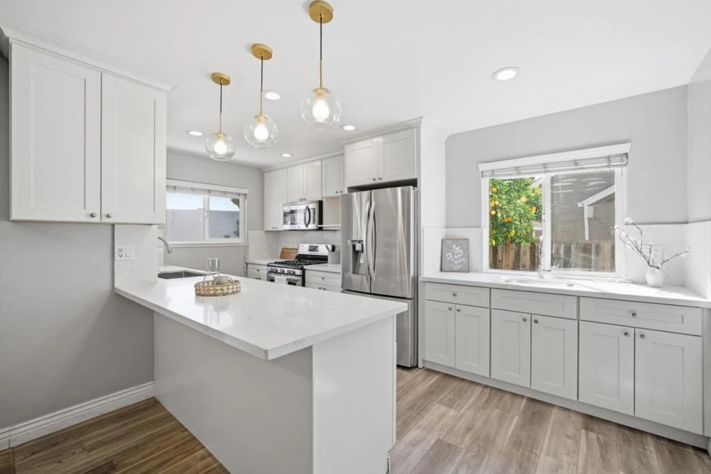 ADU possibilities on a 9,100 lot. Welcome to this charming 3-bedroom, 2-bathroom home located in the vibrant city of San Jose. Situated on a generous 9,108 square foot lot, this residence offers a spacious and comfortable living environment. The kitchen is a culinary delight, featuring granite countertops, a dishwasher, and a gas oven range, perfect for preparing delicious meals. Kitchen bar has been extended and an extra sink with cabinets as been added. The home boasts laminate and tile flooring throughout, providing both style and easy maintenance. The home also includes modern amenities such as central AC and forced air heating, ensuring year-round comfort. Convenience is key with an attached two-car garage and in-house laundry facilities, making everyday living a breeze