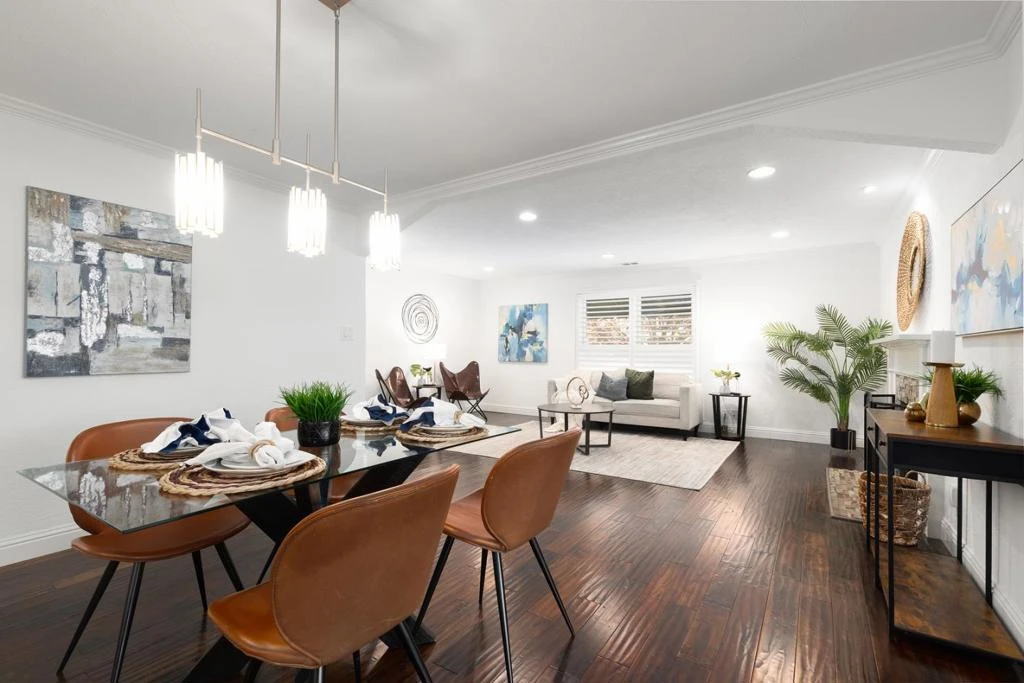 ROSEMARY GARDENS REMODEL W/ PRIVATE BACKYARD | Moments from Downtown San Jose awaits this tastefully modernized solar home in the highly central Rosemary Gardens neighborhood. Luxuriant lawns enhanced by a paver footpath and a mature Japanese maple invite you inside. Enjoy open gathering spaces with a stately fireplace and a kitchen boasting dual-tone cabinetry, bar seating, and stainless appliancesincluding a dual-oven gas range. Custom storage and a nook for an office or wardrobe enhance the light-filled primary suite. French doors connect to a private backyard with paver patios and an oversized garden/storage shed. The garage is ideal for a workshop, studio, or fitness. Elegant details include extensive crown molding, insulated windows, plantation shutters, hand-scraped African walnut floors, and ceiling fans in every bedroom. Central AC, owned solar panels, and a mudroom with oversized laundry appliances add functional convenience! Other highlights include updated bathrooms, video doorbell, keyless entry, and dimmable lighting. Near Guadalupe River Trail, shopping and dining in Japantown, SAP Center, Caltrain, San Joses Google and Apple campuses, and much more!
