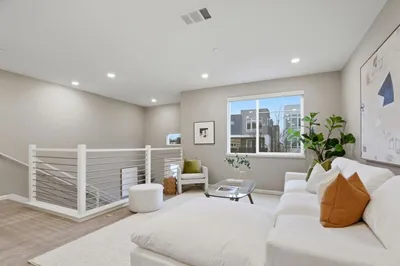 Perched in the sought-after Communications Hill community, this bright and modern tri-level townhome offers 4 bedrooms and 3.5 baths across approx. 1,995 sq. ft, featuring high ceilings, an open-concept great room, and a chefs kitchen with granite countertops, gas cooktop, stainless-steel appliances, and a standout oversized island with bar seating and a large sink-perfect for everyday living and entertaining. The first level includes a convenient junior suite-ideal for guests, extended family, or a home office, while the upper level features a relaxing primary suite with a walk-in closet and double-sink vanity. Enjoy 3-zone A/C, energy-efficient double-pane windows, a tankless water heater, water softener, in-unit laundry with electric hookup, and an attached 2-car garage with an EV outlet. Close to parks, trails, shopping, dining, and transit options with easy access to Highways 87 and 85.