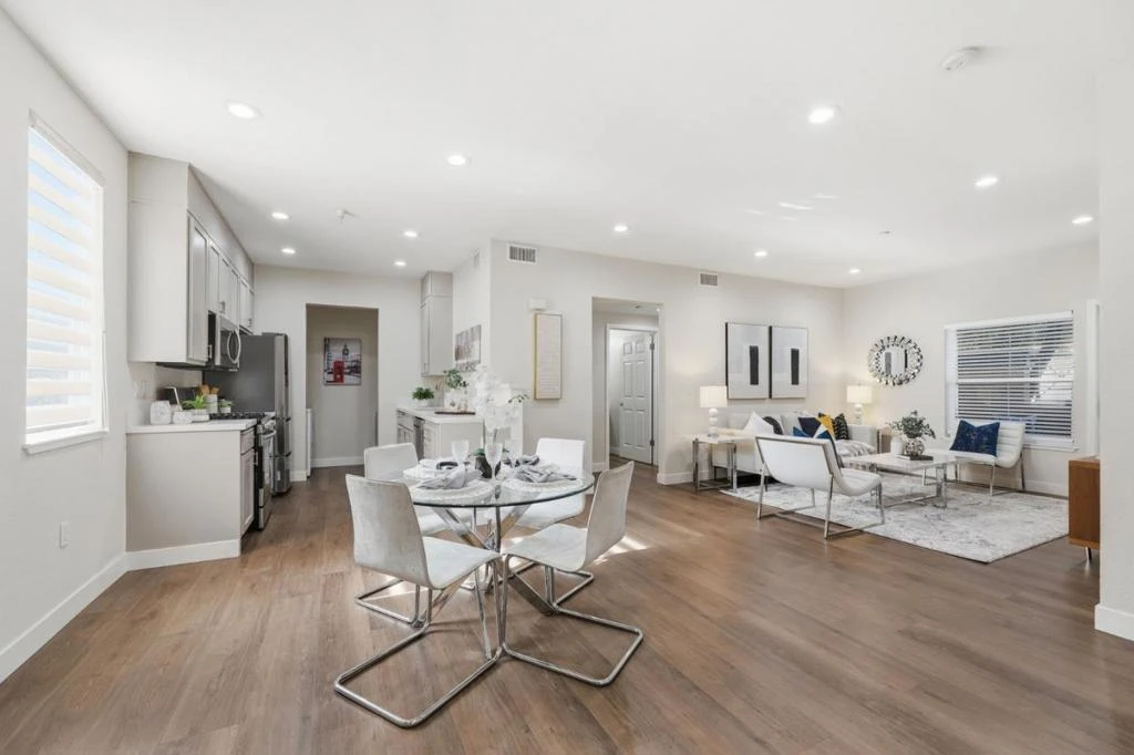 Dont miss this beautifully updated ground-floor corner unit in the highly desirable Las Mariposas community! This move-in ready 2BD/2BA condo features dual-pane windows, new flooring, recessed lighting, and abundant natural light, creating a bright and inviting space. The open-concept layout is perfect for modern living and entertaining. The updated kitchen boasts stainless steel appliances, a double refrigerator, gas stove, and refreshed cabinetry, seamlessly flowing into the dining and living areas. Both bathrooms are stylishly upgraded with marble tile shower finishes and updated cabinetry. Enjoy central heating & A/C, easy first-floor access, and a private detached garage. HOA allows rentals, and dues include water and garbage. Community amenities include BBQ areas, a private playground, and beautiful courtyards. Prime San Jose location with quick access to Highways 101, 280, 880, and 680, ideal for Silicon Valley commuters. Incredible value, Move-In Ready! Won't Last Long!