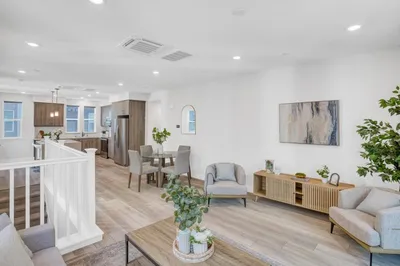 Welcome to this bright and open 2-story end-unit Townhouse style condo, just three years new and ideally located near Santana Row with quick access to major highways for an easy commute. Offering 1,661 sq ft of well-planned space, the open living and dining areas are filled with natural light and complemented by stylish flooring throughout. The spacious kitchen flows seamlessly for everyday living and entertaining. All three bedrooms and two full bathrooms are conveniently located on the same level, along with an integrated laundry area. Central AC and forced air heating provide year-round comfort, while a one-car garage offers secure parking and storage.