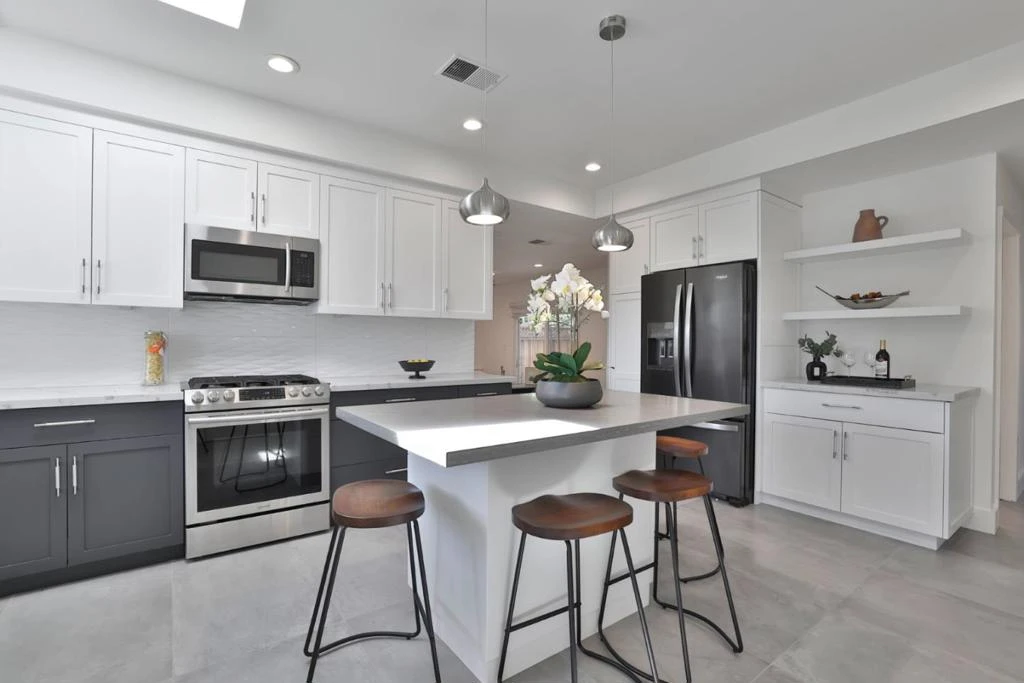 Modernized and move-in ready, this light-filled Blossom Valley gem perfectly blends style with everyday functionality. The heart of the home is a thoughtfully updated kitchen featuring quartz countertops, shaker cabinetry, stainless steel appliances, and a spacious island. A charming coffee bar and overhead skylight add a custom feel to the bright, open space. The versatile layout includes both a separate living room and a family room, which flows seamlessly through sliding glass doors to a beautifully crafted covered patio. Ideal for year-round entertaining, the outdoor space is complete with built-in speakers and pre-wiring for a flat-screen TV. With four well-appointed bedrooms and two tastefully updated bathrooms, there is ample space for a home office or guests. Major upgrades provide total peace of mind, including a new furnace, new water heater, and updated flex piping (no galvanized plumbing). Enjoy modern luxury and an unbeatable location in one of San Jose's most desirable neighborhoods.