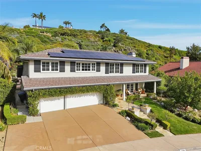 Ocean views, a resort-style backyard with pool, spa, sauna, cascading waterfall, fire table, and bar lounging areas create the ultimate setting for luxurious coastal living in Ocean Hills, just minutes from Dana Point Harbor. Ideally positioned with sprawling open space both behind and to the side, this beautifully refreshed residence offers exceptional privacy and a unique serene setting while enjoying access to Ocean Hills’ amenities which include an array of scenic trails along with a community clubhouse with water and entertainment amenities including a fitness center. Inside, the home has been thoughtfully updated with new flooring throughout, showcasing Calacatta Oro matte Italian porcelain tile across the entire main level. Fresh interior paint and a bright modern palette enhance the open-concept great room where expansive living and dining spaces center around views of the backyard oasis. The chef’s kitchen blends style and functionality with soft-close drawers/cabinets, a Sub-Zero refrigerator, JennAir six-burner gas range, under-cabinet lighting and a generous walk-in pantry. The main level offers exceptional flexibility with a private guest suite featuring an ensuite bath, along with a wellness room that can easily serve as a fifth bedroom, fitness studio or home office. Upstairs, a spacious loft landing provides additional living space while the primary suite offers a large private balcony with ocean and sunset views, an oversized walk-in closet and a spa-inspired bath with soaking tub, dual-entry glass shower, separate vanities, and a private balcony to take in the views and enjoy the coastal breeze. The backyard unfolds as a private resort-style retreat, designed for both relaxing and elevated entertaining. A saltwater pool and spa feature two Baja shelf entries and a dramatic waterfall cascading from a sculptural rain-wall arch. Tile blends seamlessly with turf and curated landscaping including fragrant roses, citrus trees and seven raised edible planter boxes. Outdoor entertaining has a fully equipped BBQ kitchen featuring a Fontana pizza oven, refrigerator, sink, and side burner. A spectacular 17-foot sit-up bar anchors the covered pergola with electric control shade, ceiling heaters and built-in lighting for year-round gatherings. Nearby is a gas fire-table lounge with integrated LED lighting. Additional highlights include a Pentair smart pool system, outdoor barrel sauna, epoxy garage flooring, and dual side yard gated access.