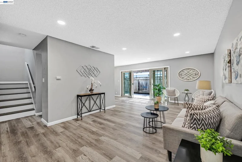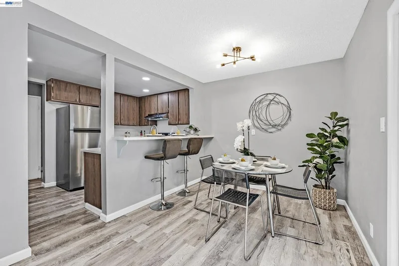 Beautifully updated townhome in the highly sought-after Washington Manor community! This 3-bedroom, 2.5-bath home features luxury vinyl plank flooring throughout, an updated kitchen with stainless steel appliances, quartz countertops, and a breakfast bar, and refreshed bathrooms with newer vanities, faucets, and newer light fixtures throughout. Relax or entertain on the low-maintenance paver patio with a charming wood pergola, accessible through a center-opening sliding glass door for seamless indoor-outdoor living. Additional highlights include built-in closet organizers, updated windows, a newer furnace, and a two-car attached garage with interior access. Residents enjoy access to a community pool, and the low HOA fees cover water, sewer, insurance, and exterior maintenance. Conveniently located near shopping, dining, BART, major freeways, and scenic Bay trails, this home is truly move-in ready!