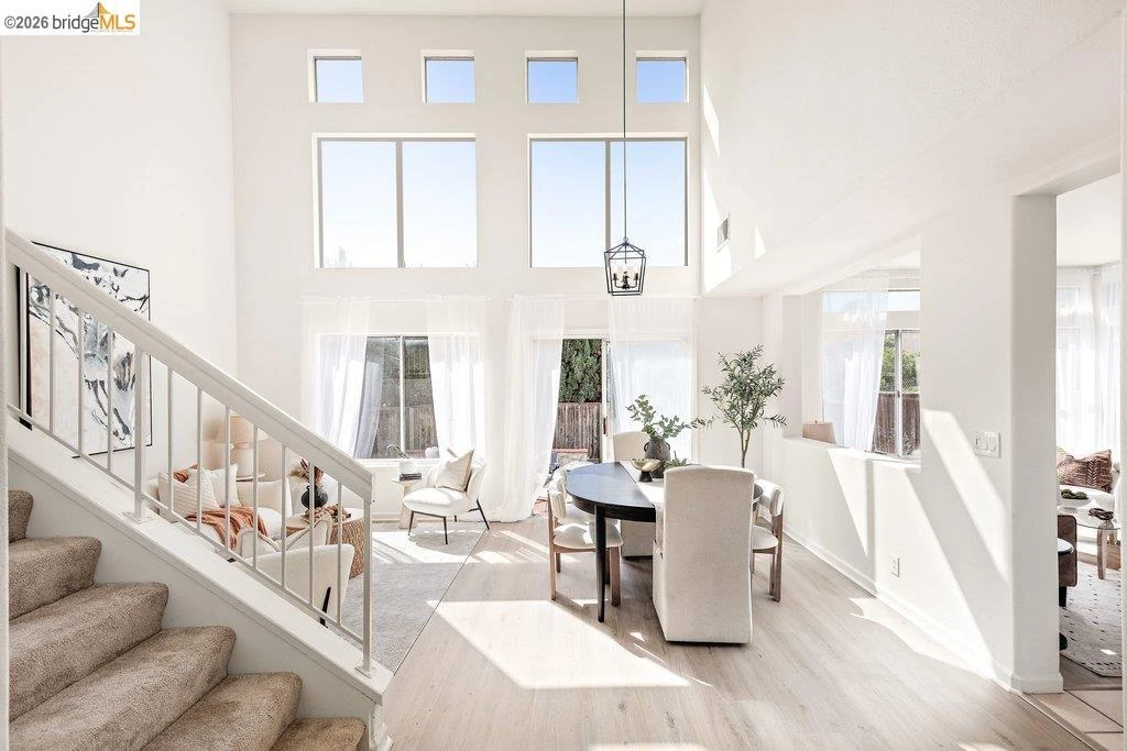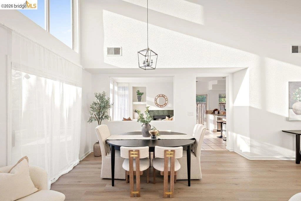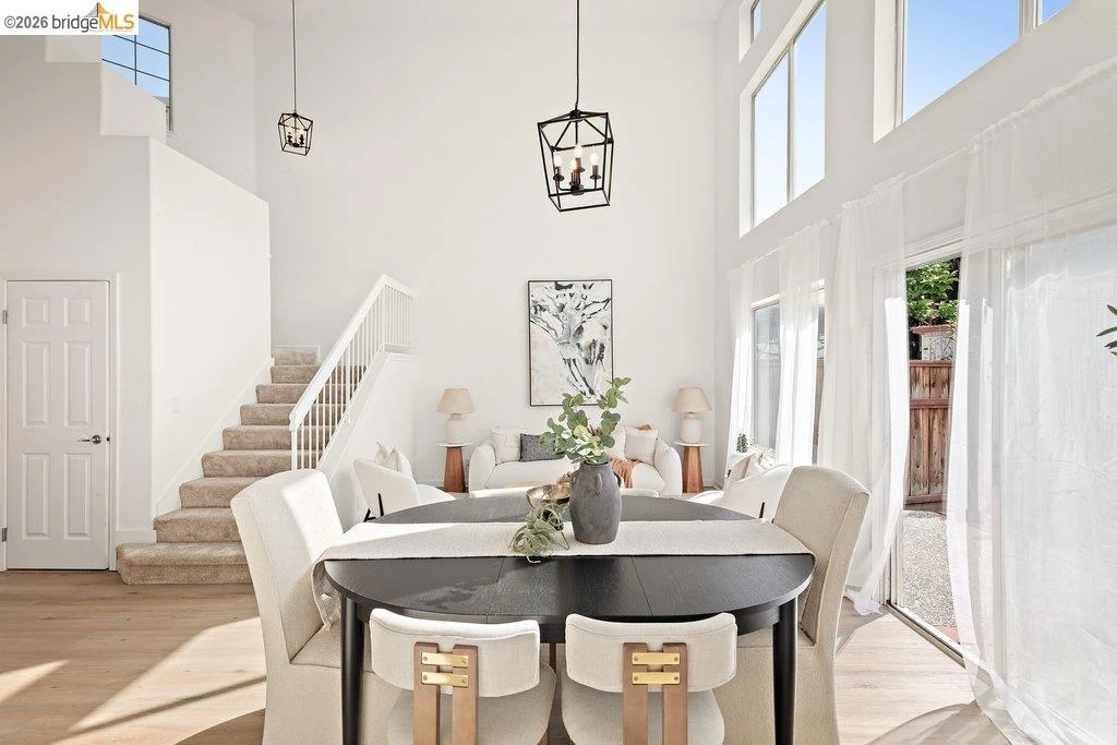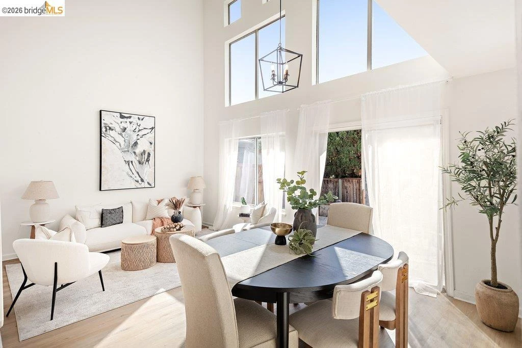 This charming single-family home offers comfort and style in a peaceful neighborhood. The sunlit living room features soaring ceilings and luxury vinyl plank flooring, flowing into the dining area. The cozy family room with a fireplace connects to a modern kitchen with stainless steel appliances, a center island, recessed lighting, and plenty of space to gather. A highly desirable downstairs bedroom and full bath add flexibility. Step outside to a private backyard oasis with planting areas and a stone-concrete patio. Upstairs, the primary suite offers vaulted ceilings, two walk-in closets, and a spa-like bathroom with a soaking tub, separate shower, and double sinks. Two additional bedrooms and a full bath complete the second floor. Enjoy a spacious 2-car garage, a welcoming front yard, and a fenced backyard—perfect for relaxing or entertaining. Conveniently located in the Bay Area with easy freeway access, this home is ready to welcome you!